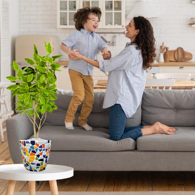 - 【Complete DIY Mosaic Planter Kit】This all-in-one mosaic art set includes a variety of irregular ceramic tiles, a quality flower pot with drainage hole, matching saucer, sealant, sponge, mixing bowl, and a step-by-step instruction guide — everything you need to create your own tile craft masterpiece at home.