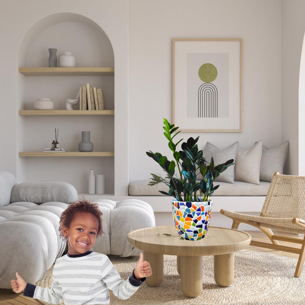 jiezaidada DIY Mosaic Planter Kit – All-in-One Ceramic Tile Craft for Beginners, Home Décor Pot with Drainage & Tray, Great for Creative Hobbies, Gifts, or Family Projects