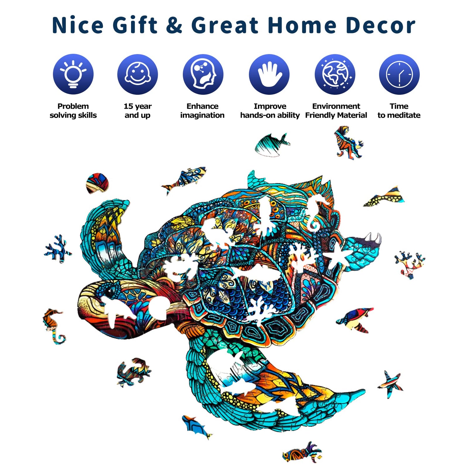 - NATURE THEMED PUZZLE SET :Enjoy a relaxing time with this Sea Turtle Puzzle! Available in 4 sizes, Including jigsaw pieces made of high-quality natural wood like marine animals and starfish, do not hurt your hands, clear picture, high recognition, no color fading, harmless to human body.