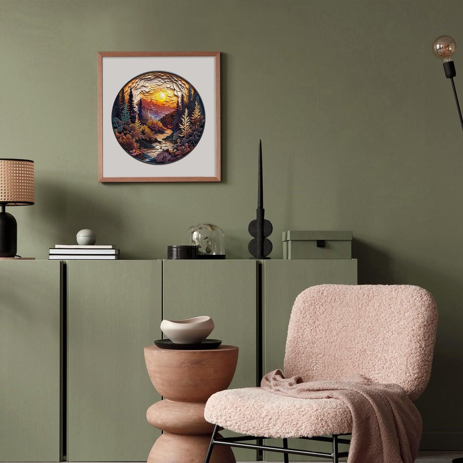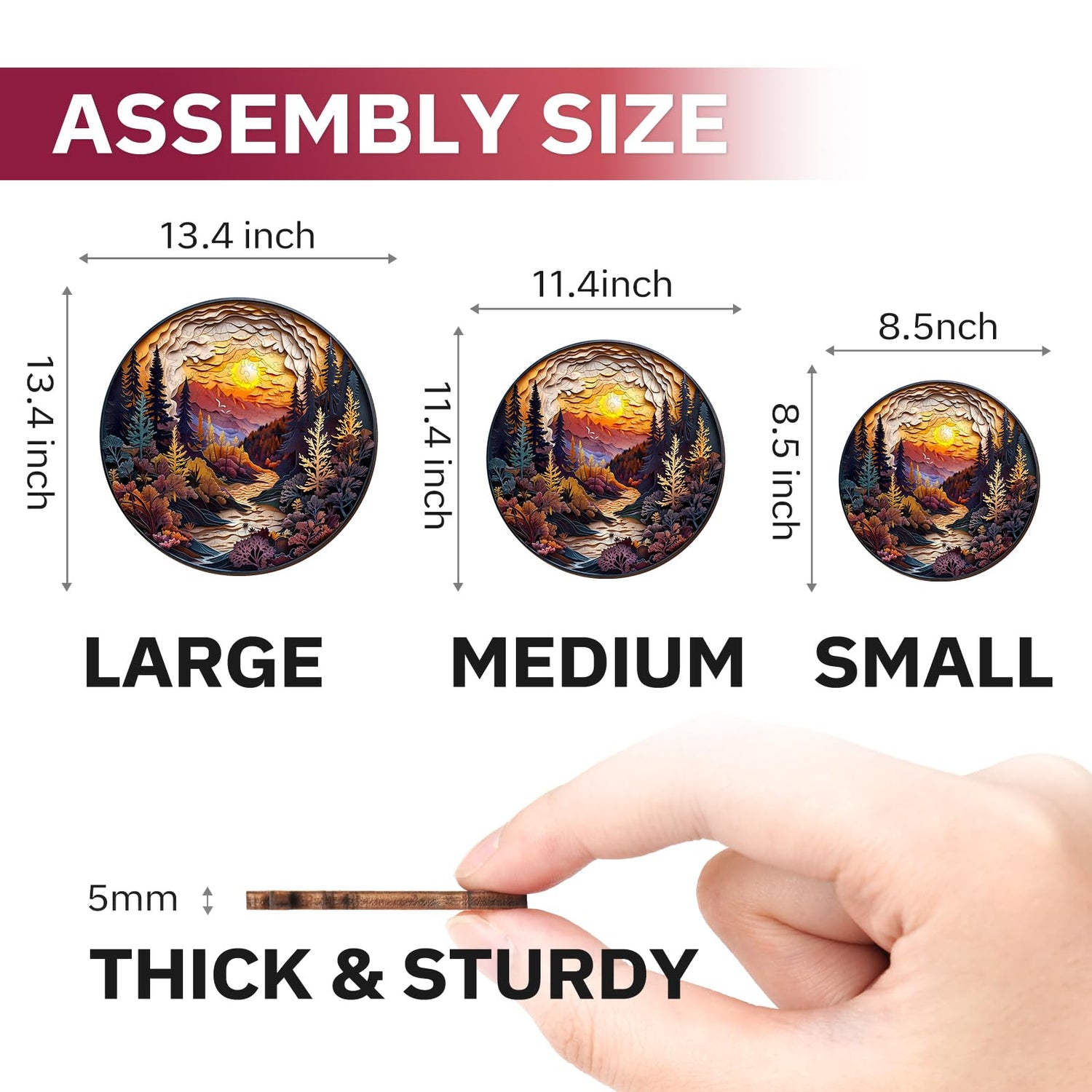 Jigfoxy Wooden Puzzles for Adults, Visual 3D Sunset Forest Wood Puzzles Adult, Unique Animal Shape Wooden Jigsaw Puzzles for Adults, Birthday Gifts for Puzzle Lovers, Family (M-11.4 * 11.4in-200pcs)