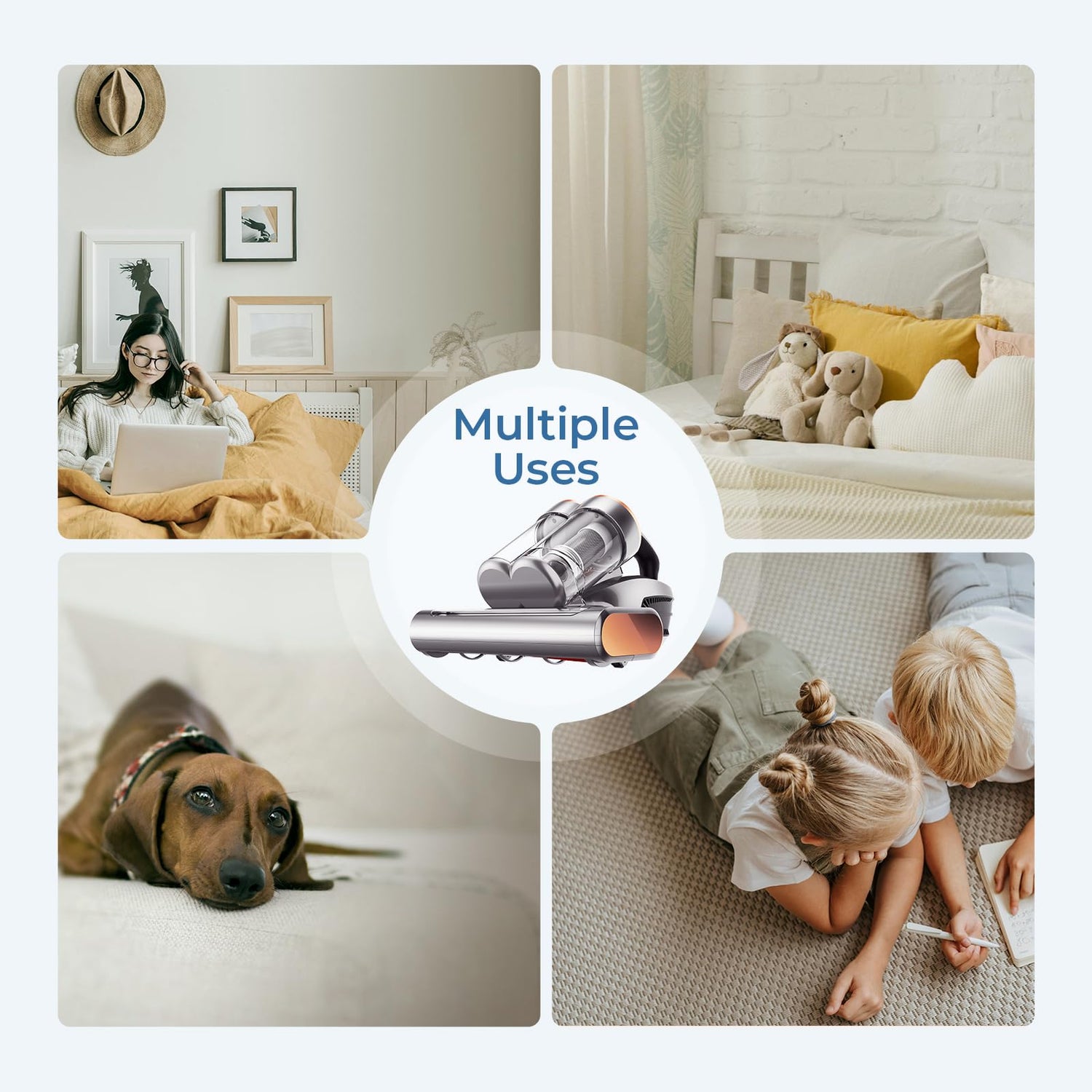- 99% Anti-allergen : Jigoo bed vacuum equipped with a 254nm UV light and ultrasonic technology, uv mattress vacuum cleaner eliminates various allergens and other invisible harmful-things from beds, mattresses, pillows, and other fabric surfaces. It helps maintain cleanliness, deep cleaning,protecting the health of your family.