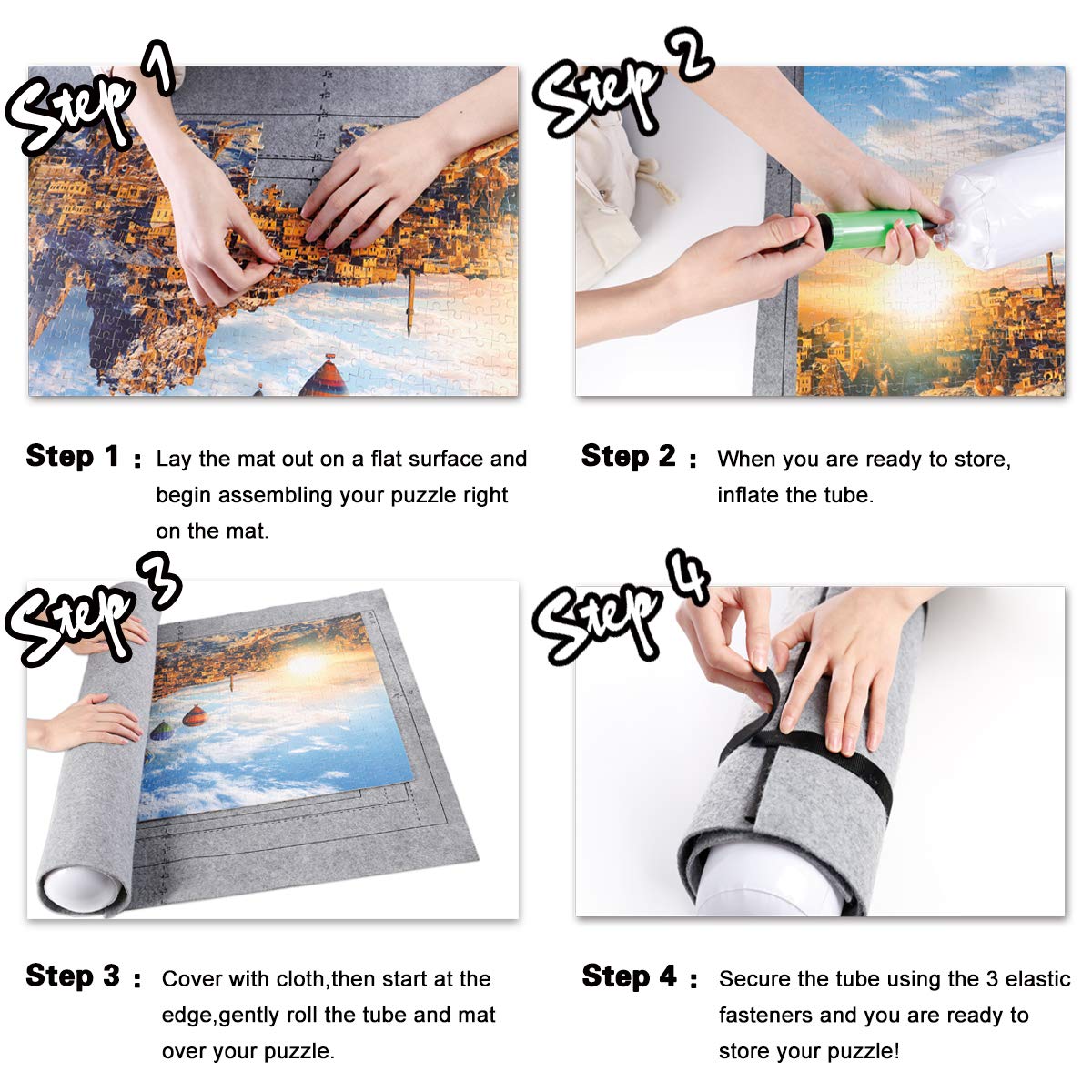 - 【Packing up your puzzle has never been easier!】 Just follow these 4 simple steps: 1.Inflate the tube 2.Roll up the mat 3.Secure with the 3 Velcro straps 4.Slip it into the storage bag. Super simple, right? It’s that easy—and that’s why puzzle lovers trust us! Simple, quick, and hassle-free—just the way it should be!