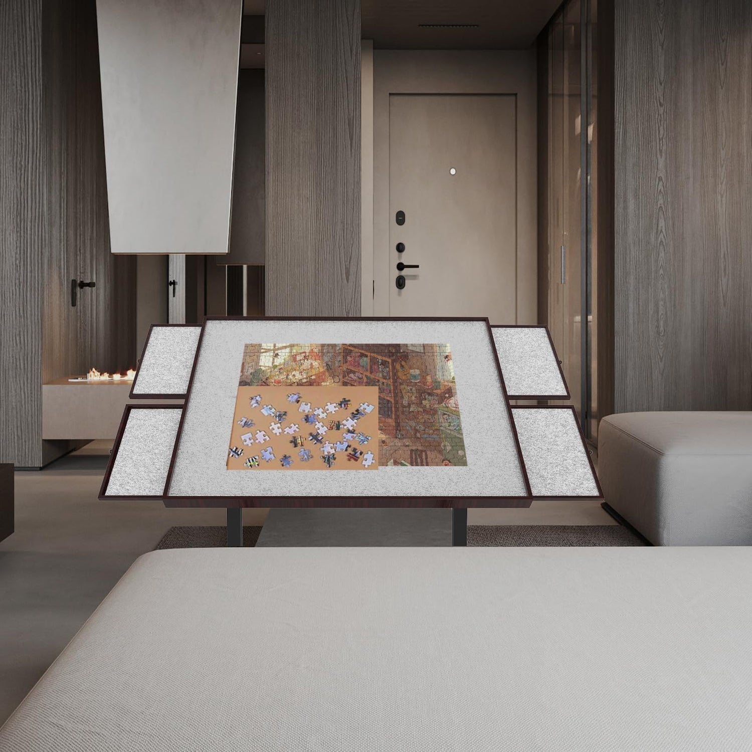 Jigsaw Puzzle Table 1500 Pieces,Adjustable Height&Up Puzzle Board with Cover and 4 Drawers,34×26in Puzzle Tables for Adults,Puzzle Board with Cover with Legs for Puzzle Doer(Coffee Color)