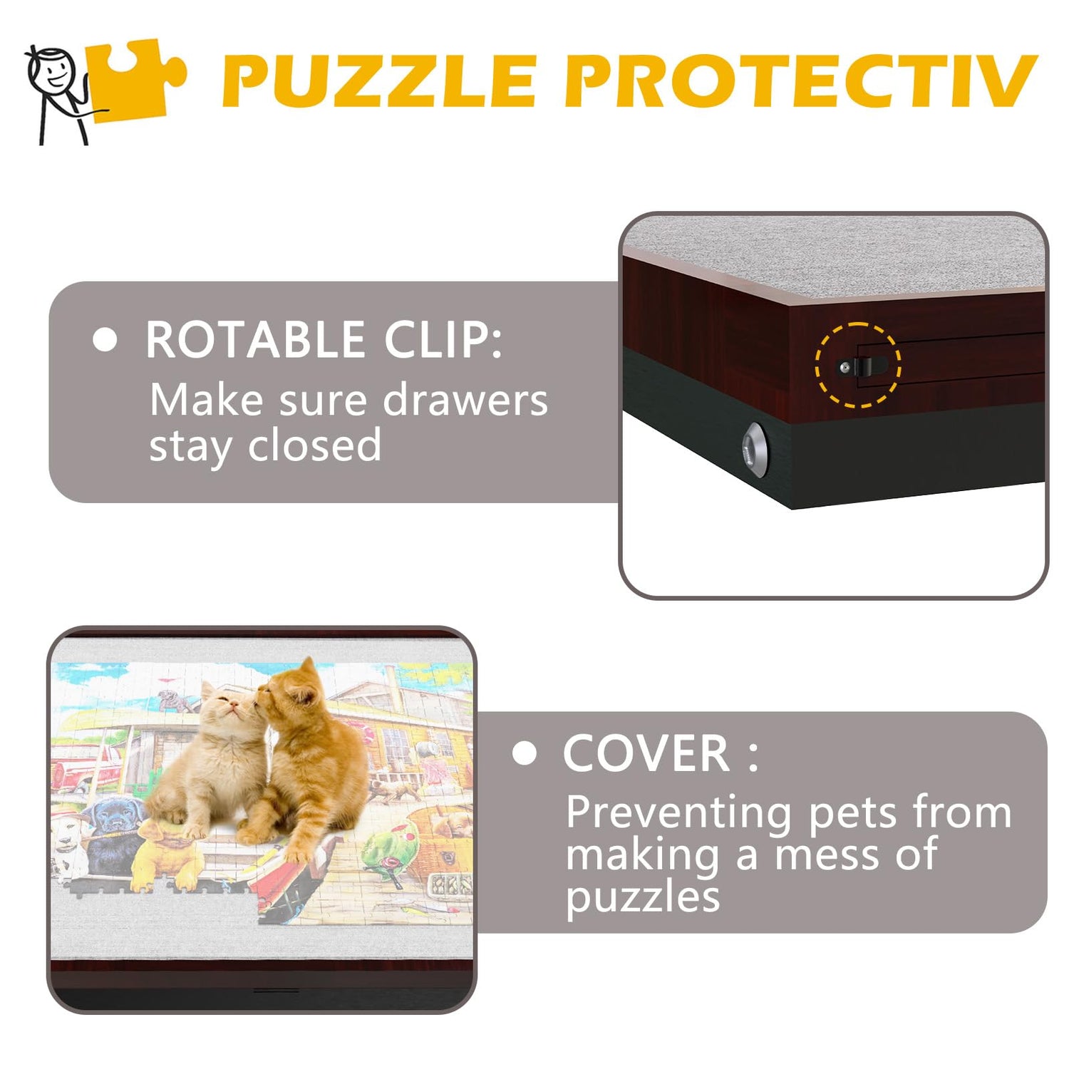 - Puzzle Table with 4 Drawers :4 sliding drawers were also fitted with felt, and the sides of the drawers were fitted with metal sheet to prevent jigsaw pieces from falling off and ensure all the drawers are stay closed when transportation.