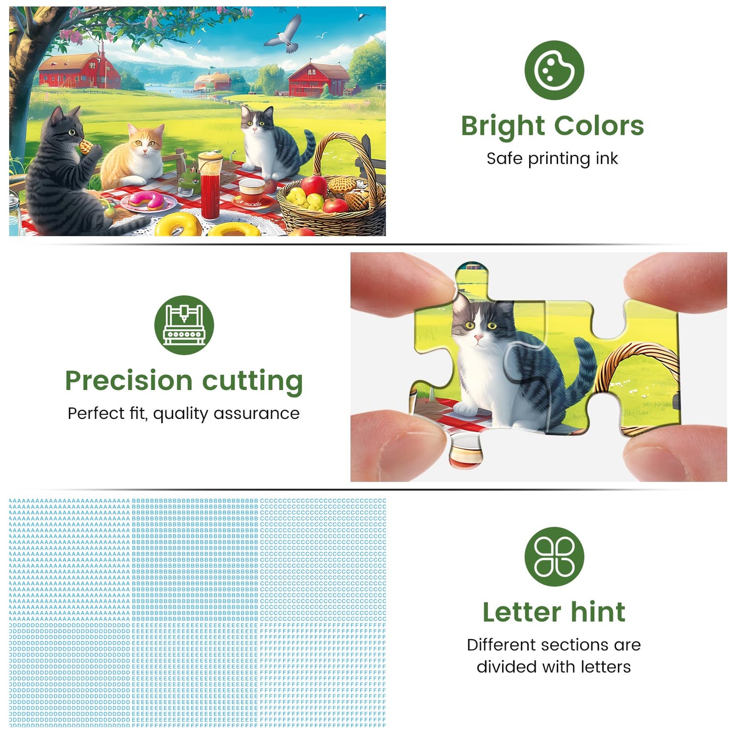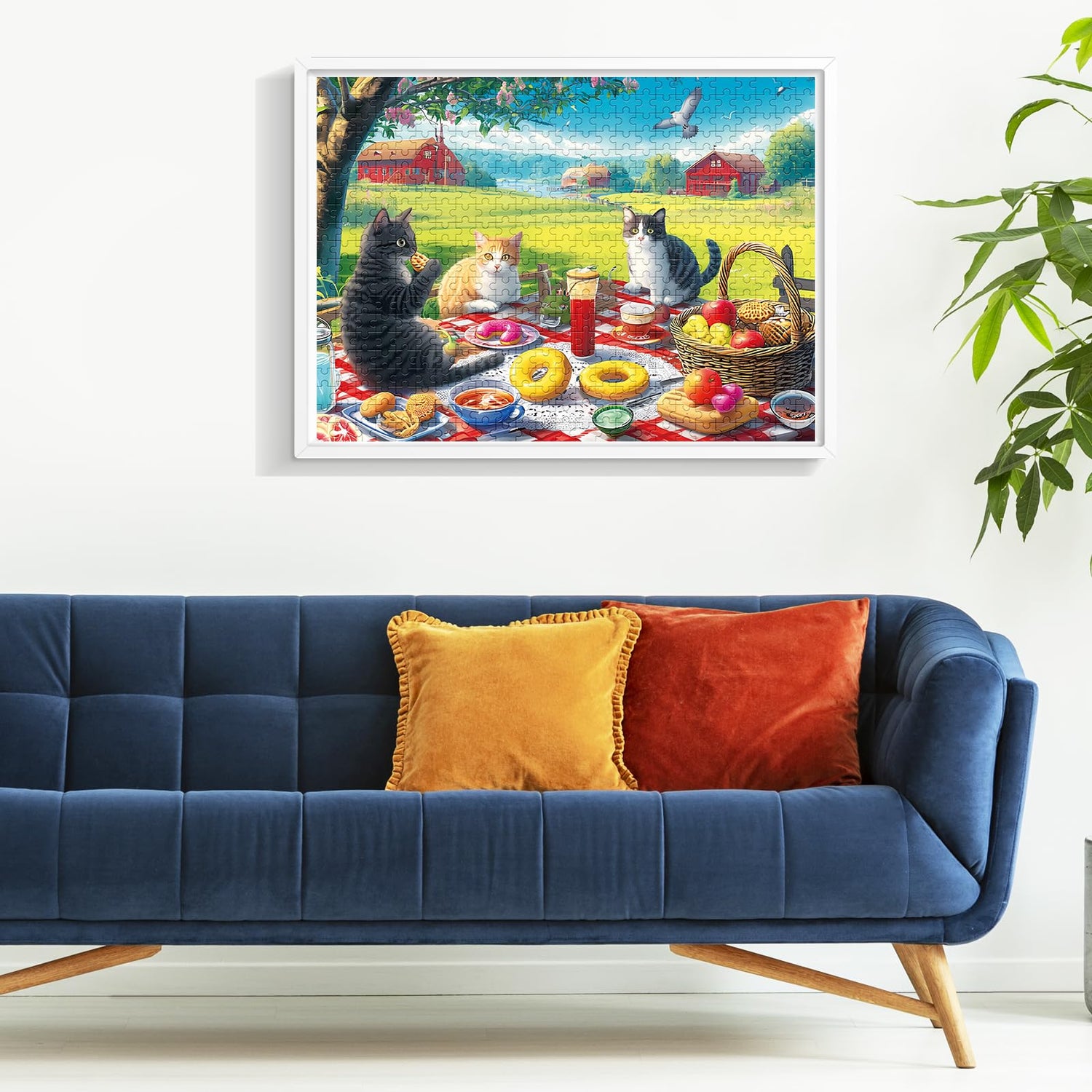 - 🐱[Cat Jigsaw Puzzles]🐱Take this jigsaw puzzle to enter the world of cats.Three cats are having a picnic in the suburbs, and the red grid table cloth is filled with many delicious foods. What an interesting scene!This is a creative gift for all children and adults who love cats!