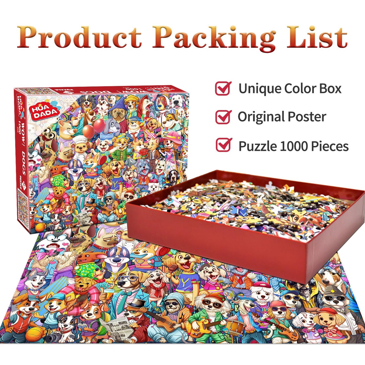 - 【 Premium-quality Material】:HUADADA puzzles for adults 1000 piece are precisely cut-outed with strong100% recycled, non-toxic, sturdy and durable paper. A bonus glare-free puzzle poster (70*50cm / 27.6"x 19.7"); Dust-free round edges are safe for your little ones
