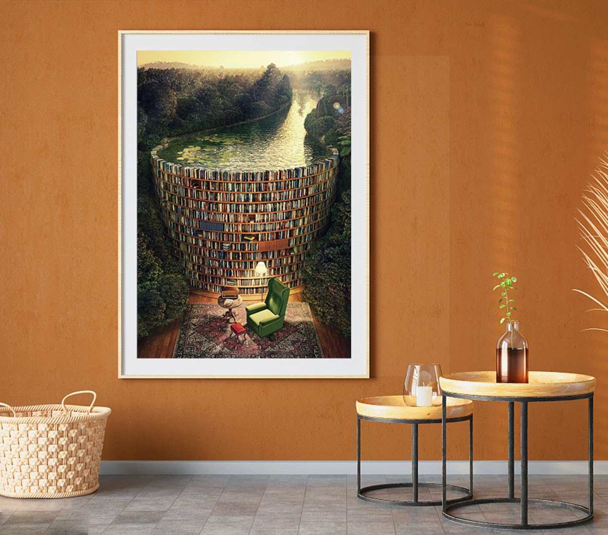 Jigsaw Puzzles for Adults, 1000 Pieces and up, Bookshelf Canal Puzzle, Books Library Challenging Funny Puzzles for Friends Family Activity Game Nights Gifts