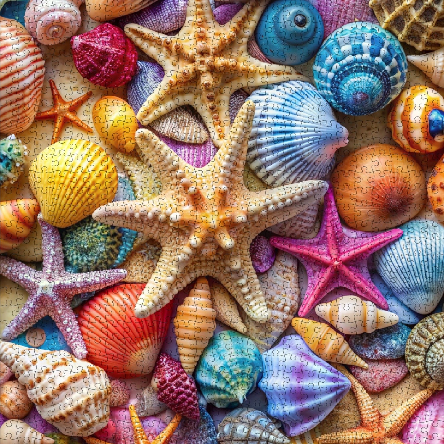 - Colorful Art Jigsaw Puzzles:This is a fascinating 1000 piece shell & starfish jigsaw puzzle, colorful shells interlaced with different shapes and rich colors bring you a unique visual enjoyment, you would feel like you are in the sand and gentle waves, let you enjoy the romance of the seaside while you are working on the jigsaw puzzle.