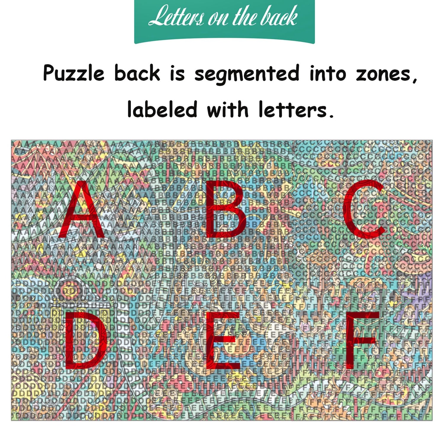 - 【Interactive Puzzle Game】You can play puzzles with family and friends during holidays or parties and spend a happy time. Jigsaw puzzles is a excellent practice for problem-solving and spatial reasoning skills with an anxiety relief. Back sides of puzzle pieces are marked with English letters and divided into areas. Effectively avoid chaos when playing jigsaw puzzles.