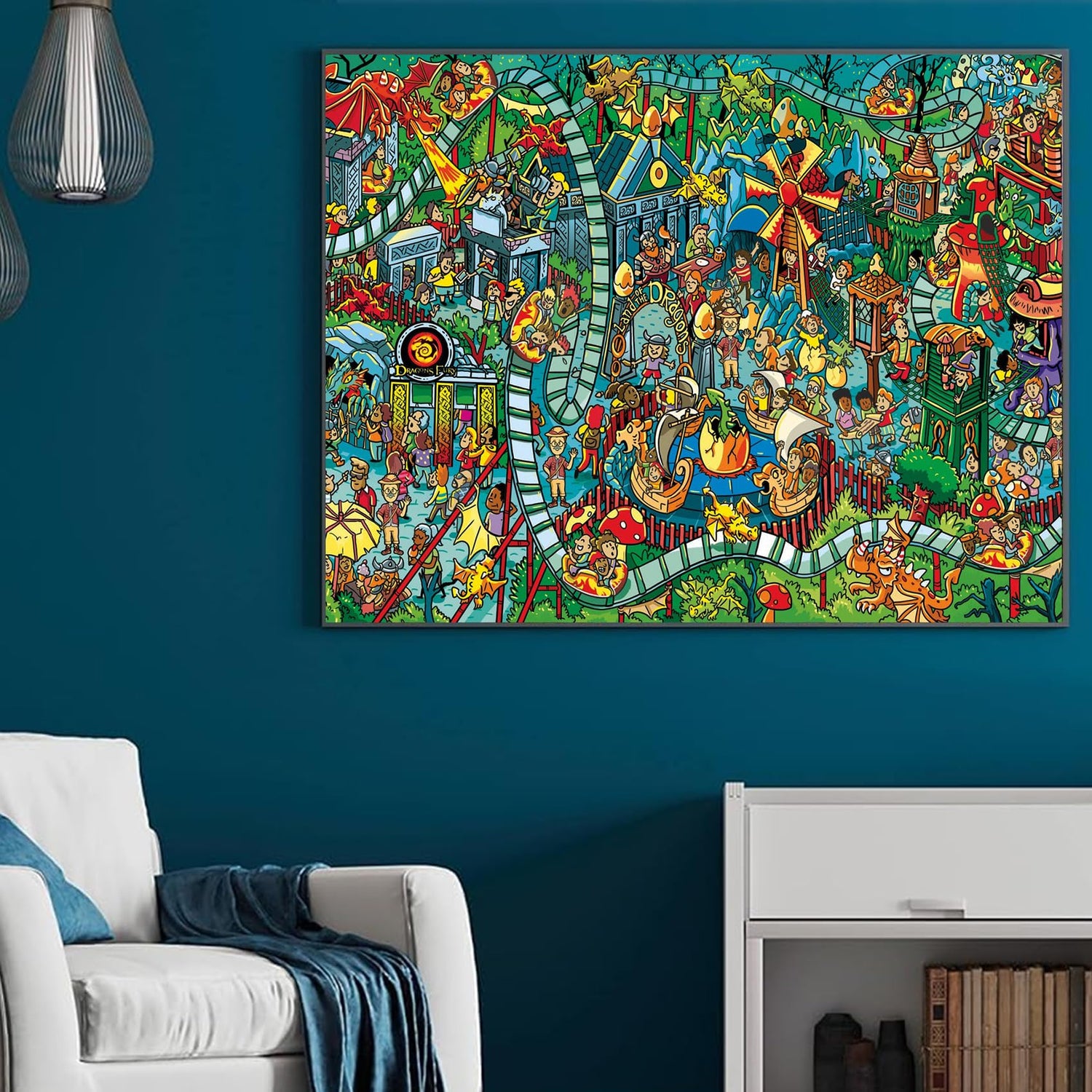 Jigsaw Puzzles for Adults, 1000 Pieces Dinosaur Park Puzzle, Cartoon Painting Challenging Puzzles for Family Activity Game Nights Gifts Fidget Stress Relief