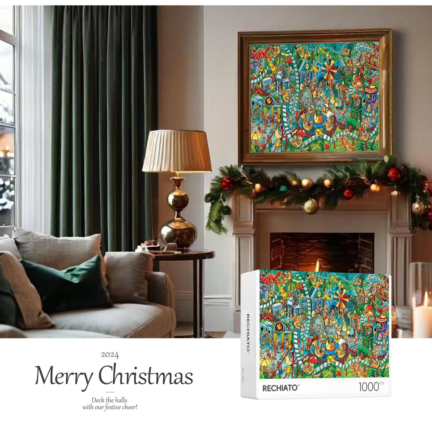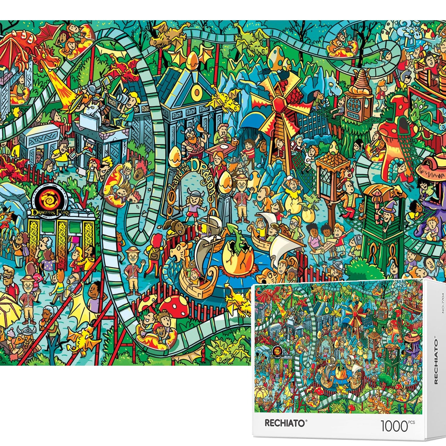 - 【Friendly Materials & Exellent Workmanship】RECHIATO jigsaw puzzles, high-quality, durable material and no puzzle dust, , pass ASTM test, thick and sturdy. 3 layer cardboard, precision cutting technology, safe for everyone.