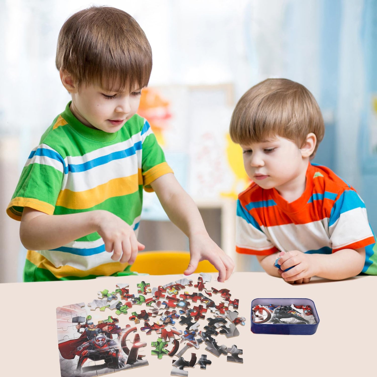 - Convenient Storage: This 60-piece jigsaw puzzle set comes with a tin box, ensuring easy storage and preventing puzzle pieces from getting lost.