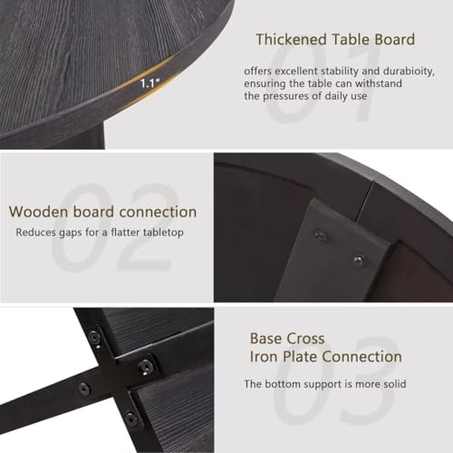 - 【Aesthetically Pleasing】The round tabletop has a delicate wood-grain texture, a waterproof and scratch-resistant surface, and is easy to clean. The antique black colour and unique, cross-shaped base create a warm and inviting look. Its modern, minimalist design blends well with a variety of interiors, adding a cosy touch to your dining room, kitchen, or living room.