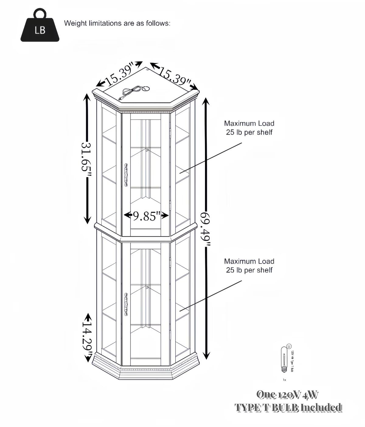 - 【Timeless Elegance】At 15.35 "L x 15.35 "W x 69.59 "H, our glass curio cabinet seamlessly blends classic design with modern functionality. Featuring exquisite glass doors and elegant metal handles, it’s the ideal centerpiece to showcase your cherished collectibles, whether it be figurines, vintage books, or fine wines.