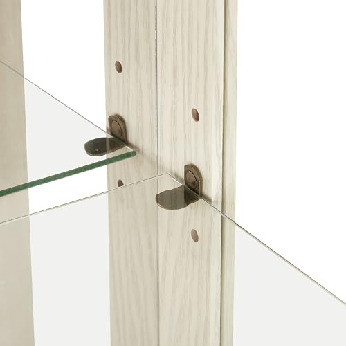 - 【Plenty of Gorgeous Display Space】 This storage cabinet has glass doors, a total of 3 shelves and a large drawer, providing plenty of space to display your decorations, albums, toys and more. Glass doors protect your items from dust and dirt, and you can clearly see your decorations. It consists of a fixed wooden shelf and two adjustable tempered glass shelves, each able to hold 15 to 22 pounds of stuff.