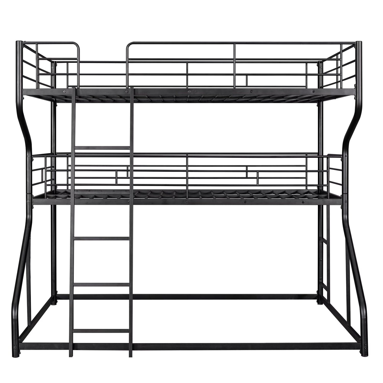 - [Space Saving Triple Bunk Bed] The full xl over twin xl over queen size triple bunk bed with Long and Short Ladder is perfect for maximizing space in guest rooms or compact living areas, accommodate multiple sleeps without sacrificing style.