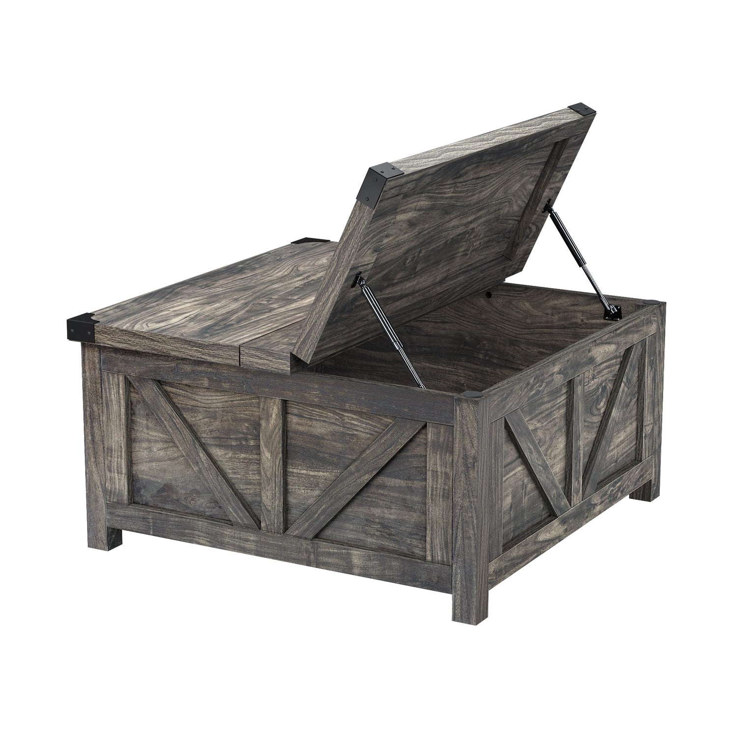 jimeimen Farmhouse Lift Top Coffee Table with Storage, Wood Square Center Table with Charging Station&USB Ports, Living Room Central Table w/Large Hidden Space, for Living Room, Bedroom, Home Office