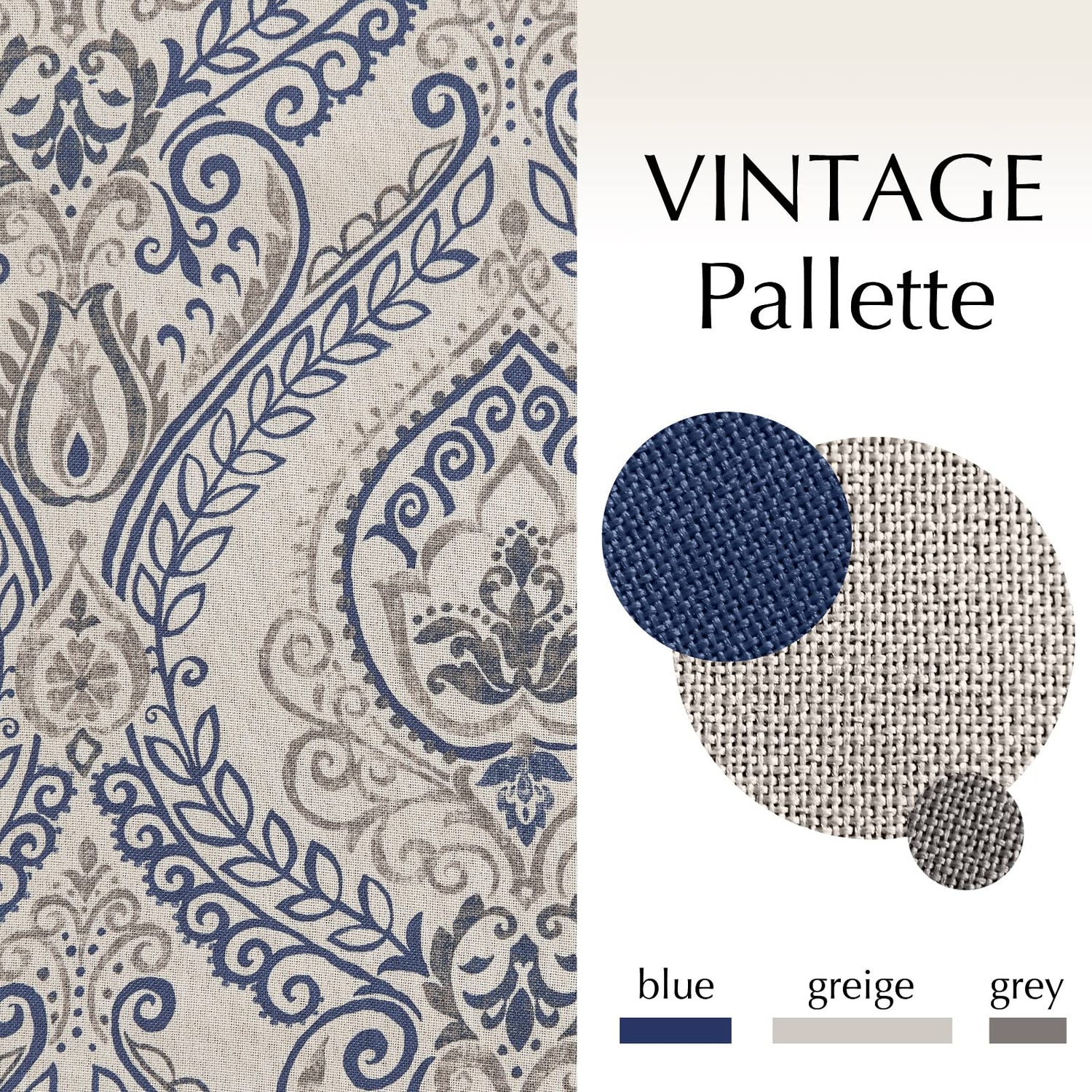 jinchan Linen Textured Curtains for Living Room Darkening 108 Inches Long, Medallion Drapes for Bedroom, Damask Pattern Window Treatments Vintage Curtain Panels, Extra Long 2 Panels Blue on Greige