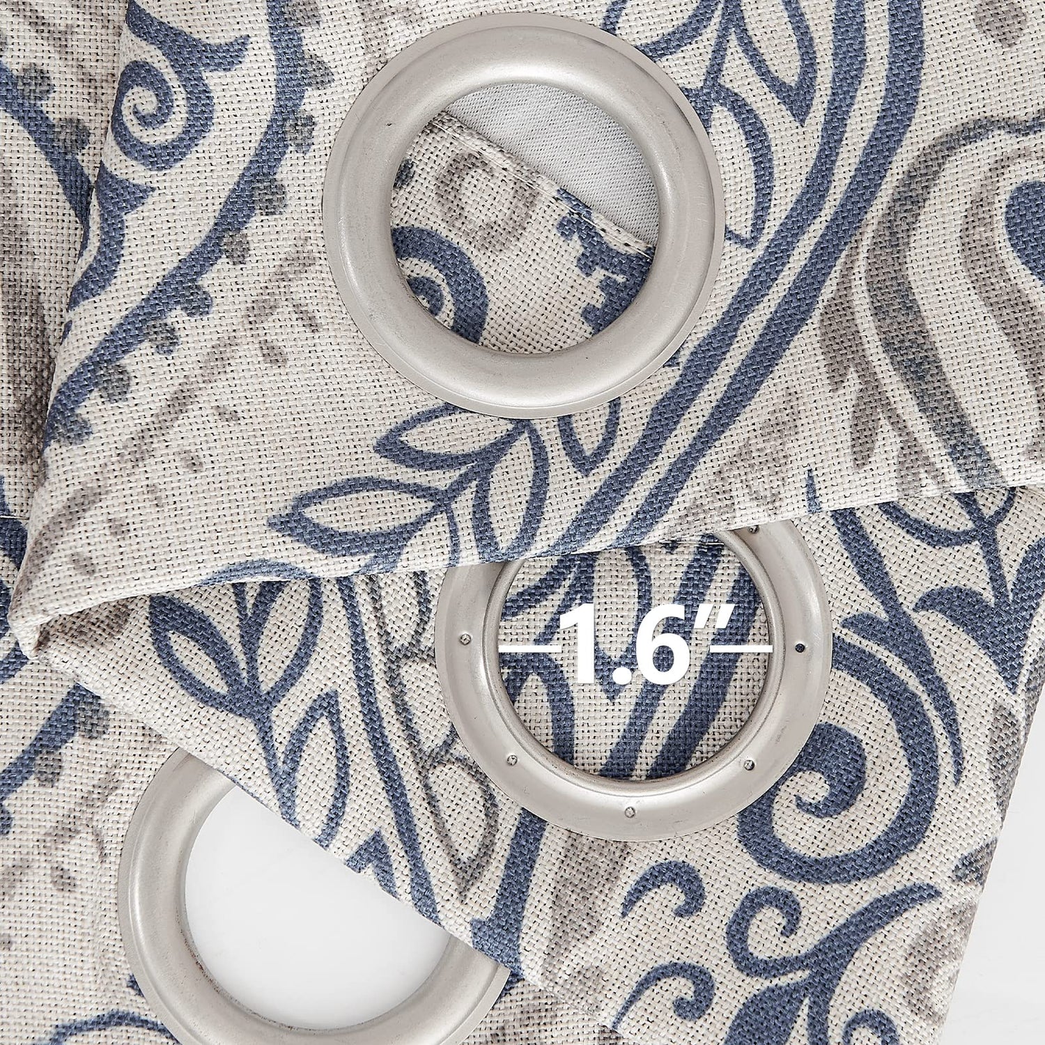 - MEASURE and OCCASION: Package includes 2 damask printed room darkening curtains. Each measures 52"width by 108" length. The hanging method is grommet, each curtain with 8 matte sliver grommets, 2.4" external diameter and inner is 1.6". Perfect for your living room, bedroom, home theater, nursery and so on