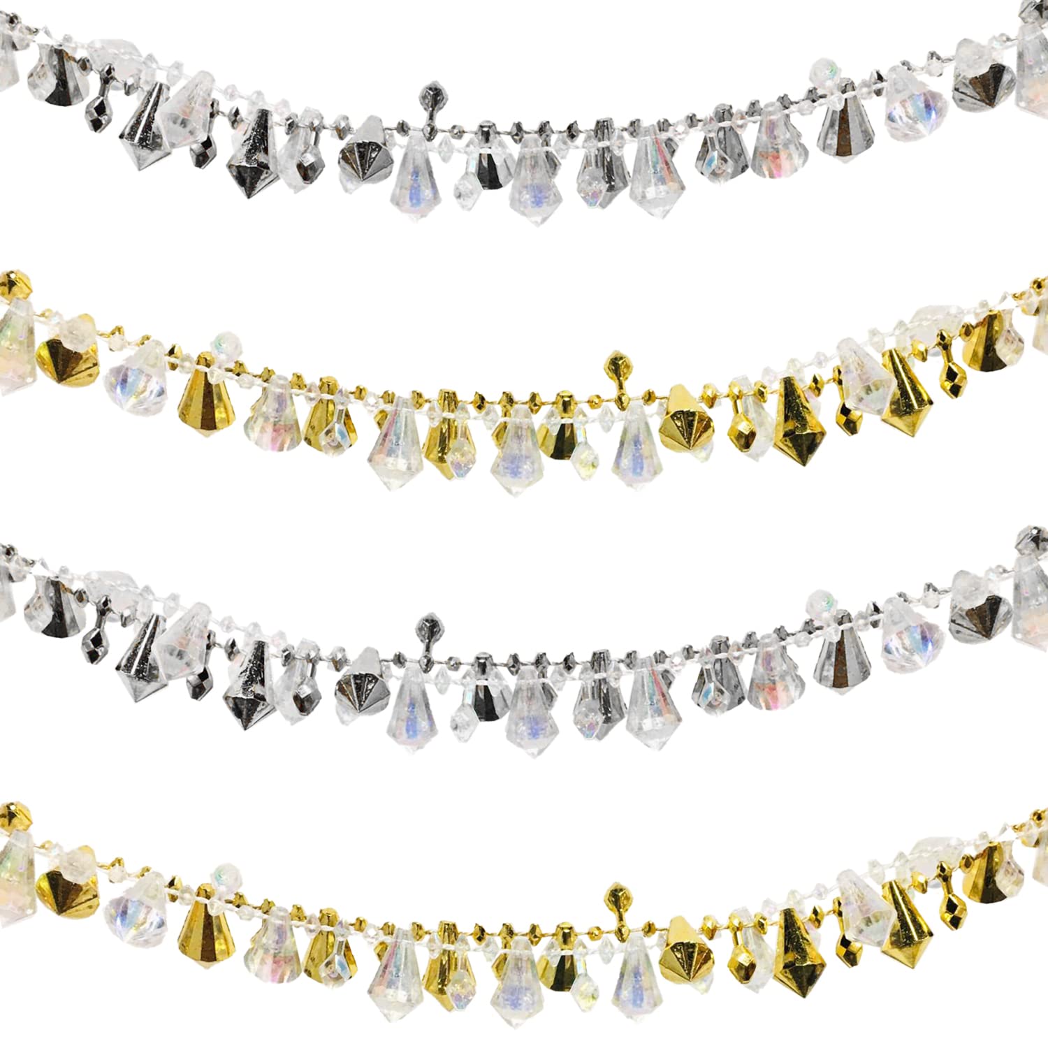 - ACRYLIC PREMIUM QUALITY: This decorated beaded christmas garland unlit is made of thick durable acrylic plastic material, lightweight but strong sturdy. This beautiful gold and iridescent garland will bling sparkle in the light, gorgeous elegant colors in clear diamond iridescent and light gold beads, glistens with light.