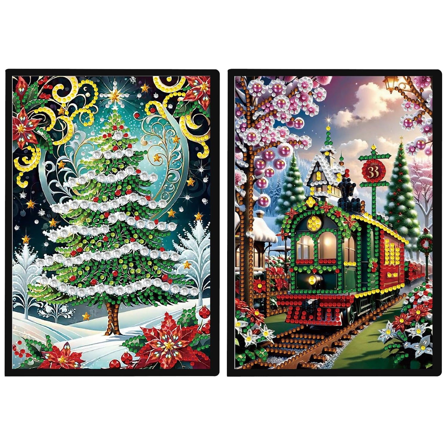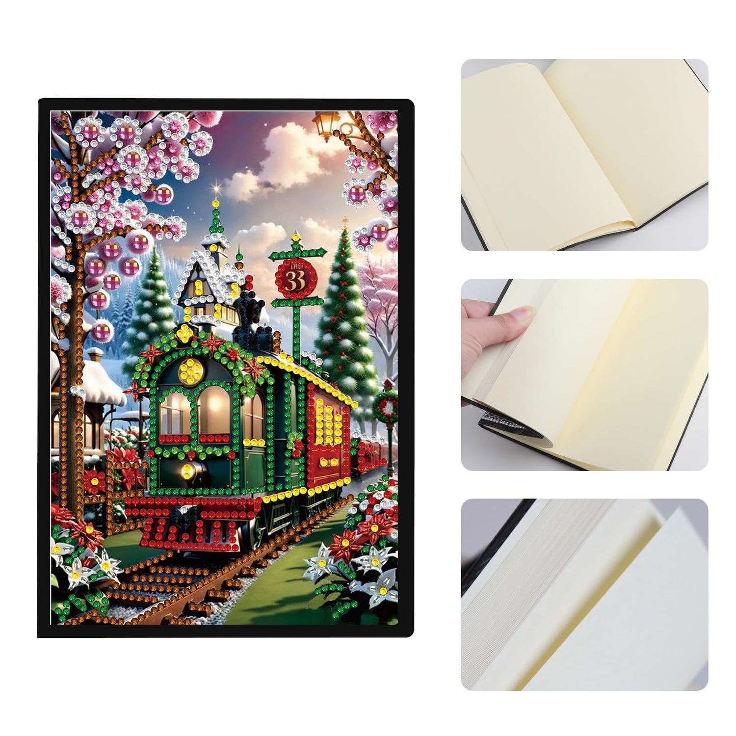 JISHSHAY 2 PCS Christmas Diamond Painting Notebook Diary Christmas Tree Diamond Art Leather Journal Xmas Gem Art Note Book Train Mosaic Kits for Adults Journal Notebook Gem Painting Sketchbook Diary