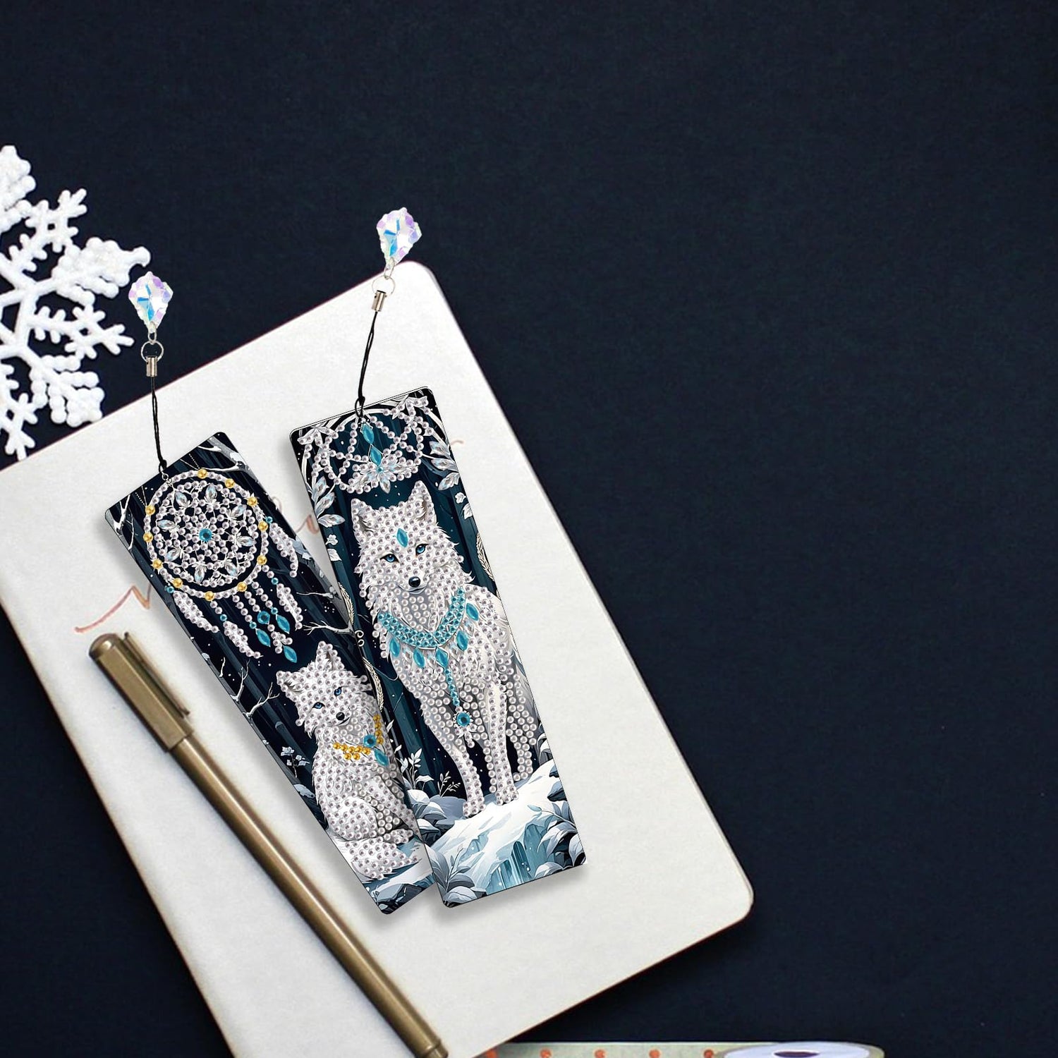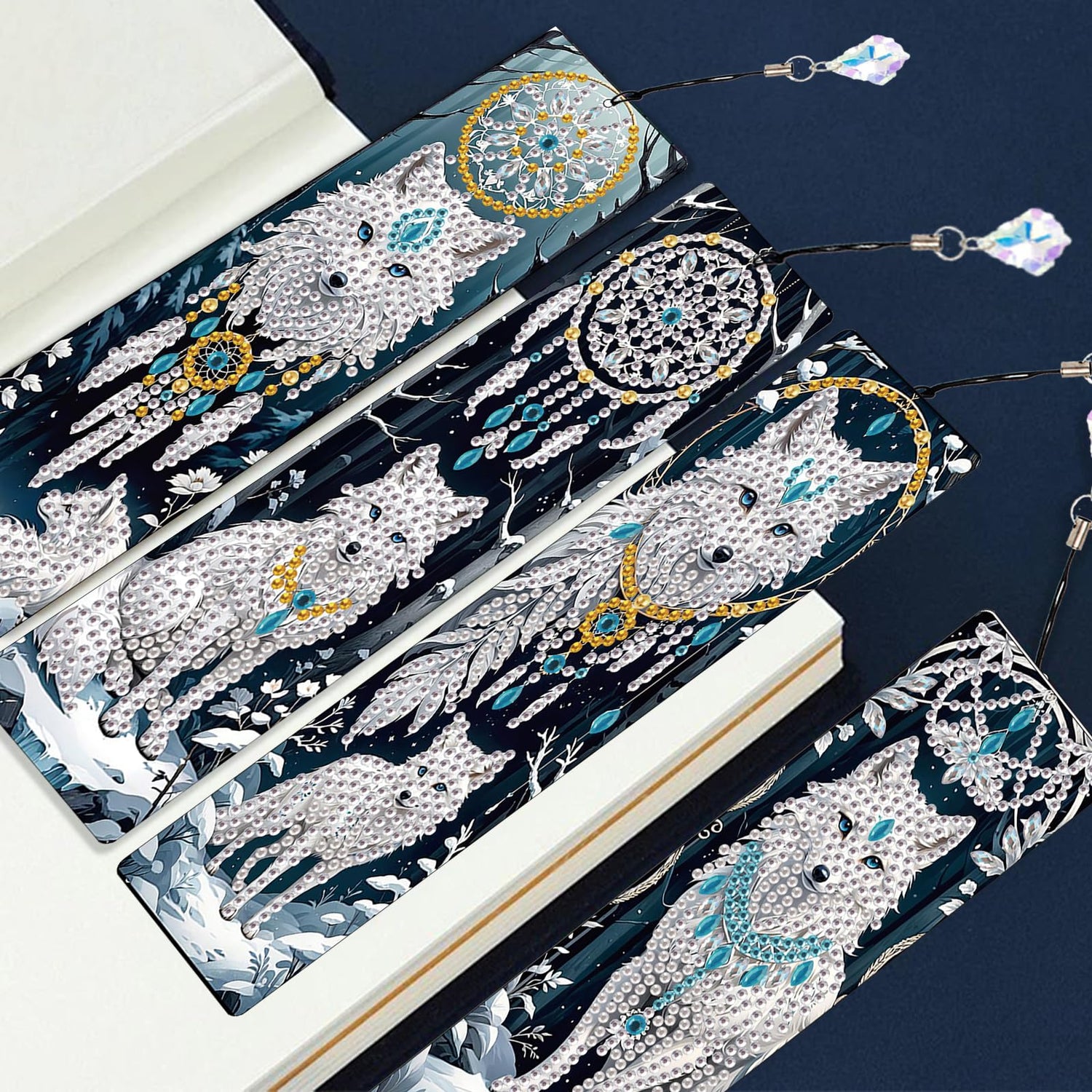JISHSHAY 4 PCS Diamond Art Book Marks Wolf Diamond Painting Bookmarks Dreamcatcher Gem Art Bookmarkers Animal Gem Painting Book Markers Mosaic Kits for Adults Page Markers Embroidery Bookmarks