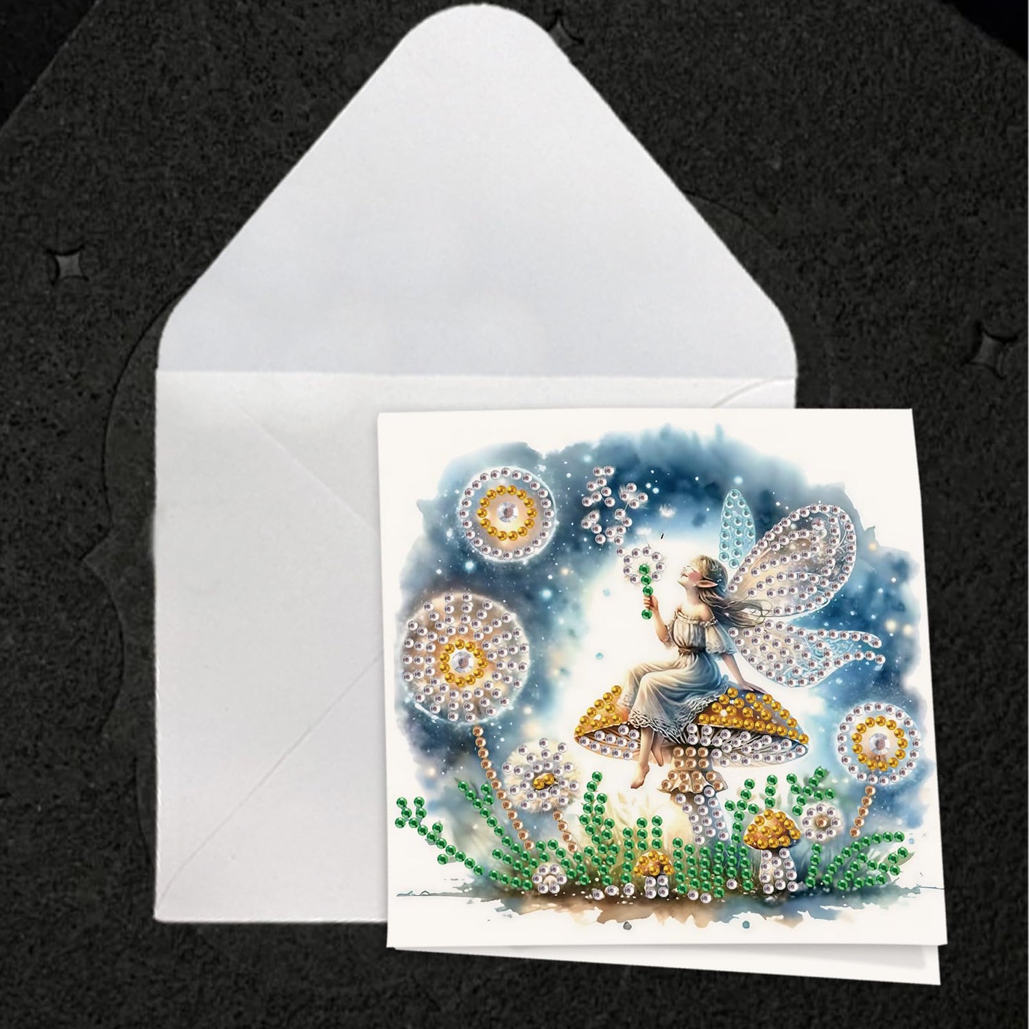 JISHSHAY 6 PCS Fairy Diamond Painting Greeting Cards Elf Diamond Art Birthday Cards with Envelopes Mushroom Gem Art Mosaic Kits for Adults, for Anniversary Valentine Thank You Graduation All Occasion