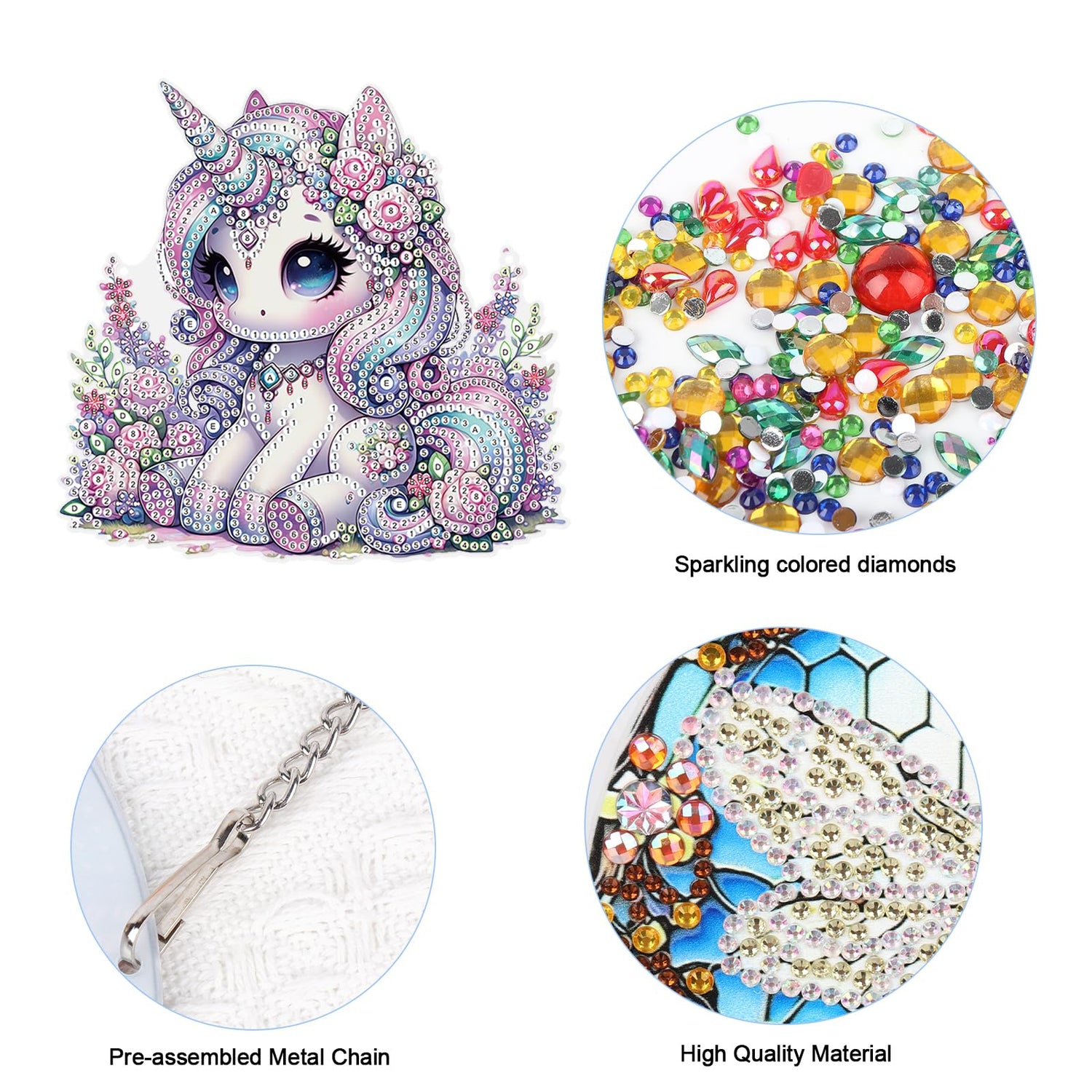 - Strong Viscosity/Acrylic Sheet/Metal Chain—The clay glue of diamond painting diamond art custom diamond painting diamond is featuring in good viscosity, so drills and rhinestones will be not easy to fall off, reliable and durable for long-term using and storing, no fading or wearing. The diamond art wind chimes have a single-sided design for sticking diamonds on both sides, enhancing shine and beauty. The diamond painting pendant kit consists of an acrylic sheet and a metal chain