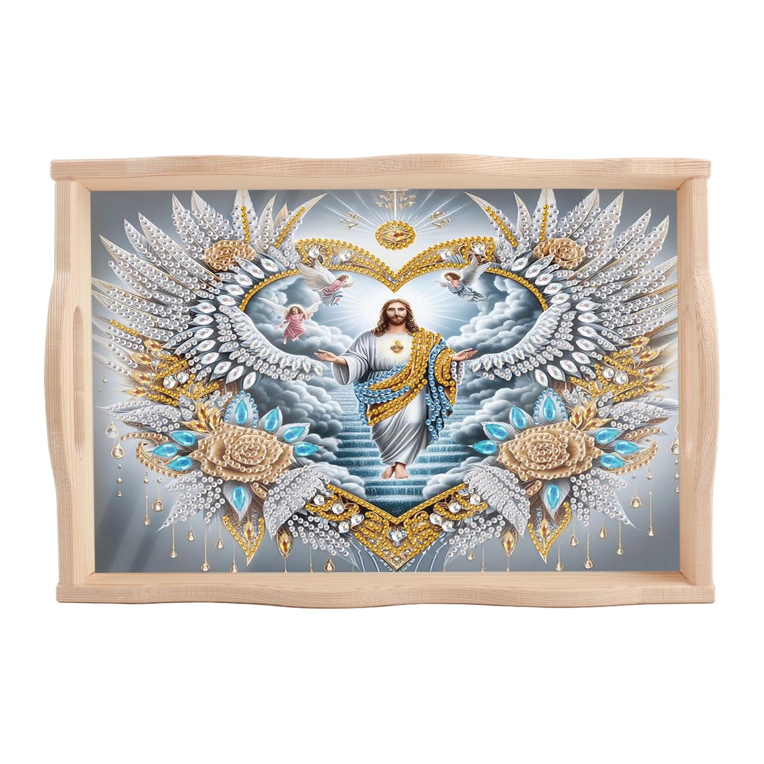 JISHSHAY Diamond Art Serving Tray Diamond Painting Food Tray Gem Art Serving Platter Gem Painting Mosaic Kits for Adults DIY Kits for Adults Table Decor, with Handle 20×30cm/7.87×11.81in, Jesus