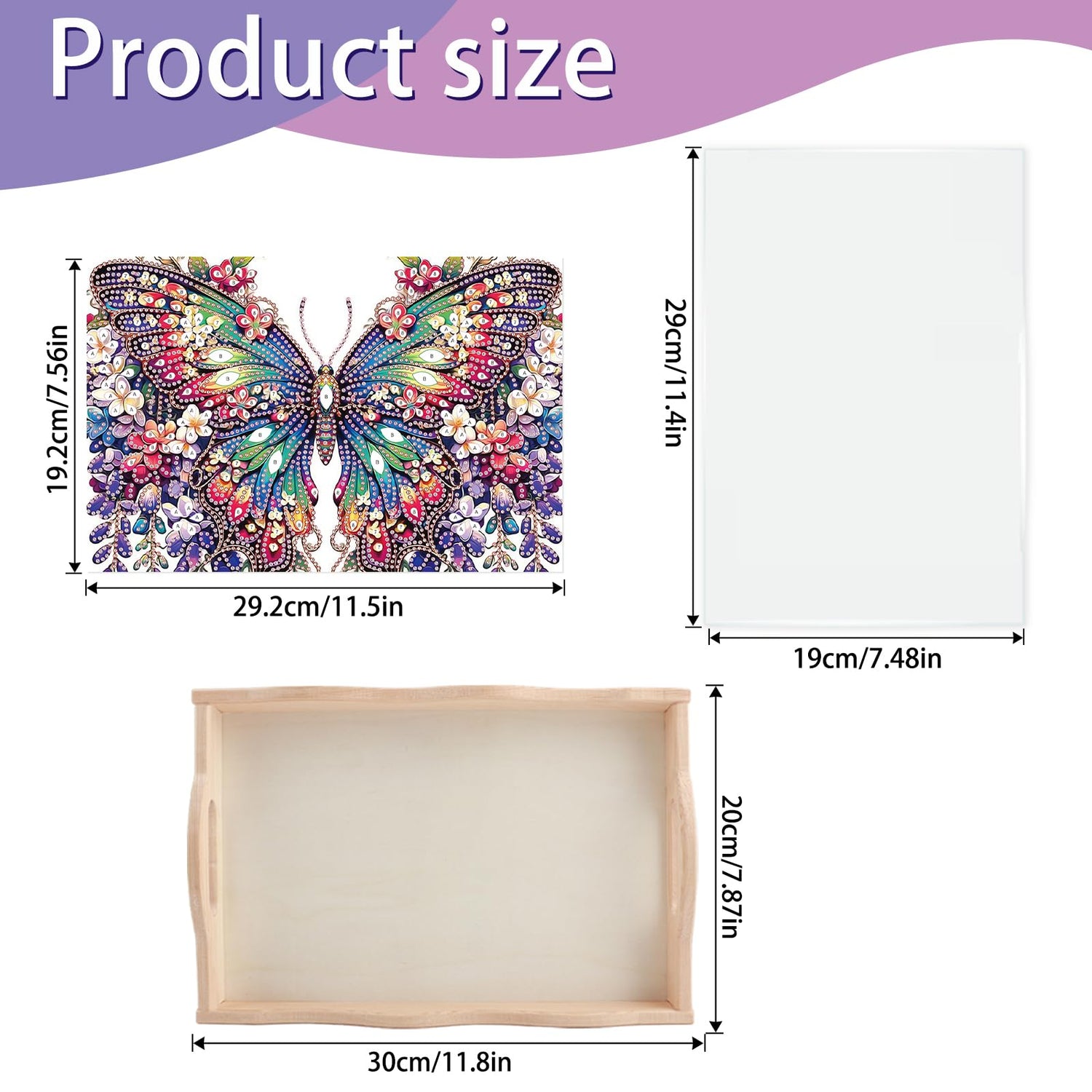 JISHSHAY Diamond Art Serving Tray Diamond Painting Food Tray Gem Art Serving Platter Gem Painting Mosaic Kits for Adults DIY Kits for Adults, with Wood Handle 20×30cm/7.87×11.81in, Butterfly