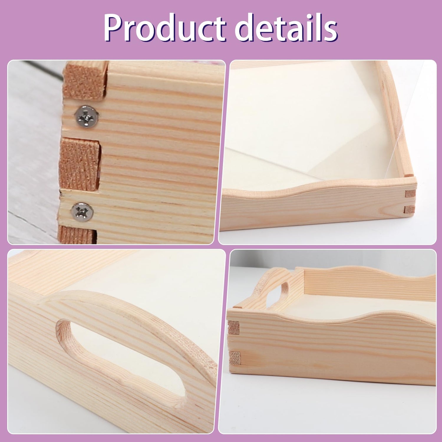 - Hot Melt Adhesive/Hollow Handle/Acrylic Sheet—Hot melt adhesive of 5d diamond painting serving tray has good viscosity, so the rhinestones of diamond art kits serving tray are not easy to fall off, suitable for long-term use and storage without fading or wear. Diamond painting tray is made of wood that is sturdy and long-lasting.Hollow handle is non-slip and easy to take.An acrylic sheet is placed above the gem art,which will not damage the diamond art,and it is more convenient to place food