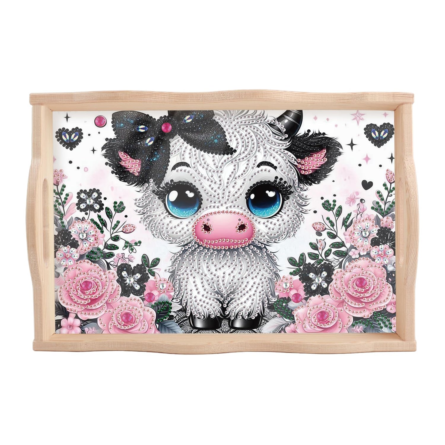 JISHSHAY Diamond Art Serving Tray Diamond Painting Food Tray Gem Art Serving Platter Gem Painting Mosaic Kits for Adults DIY Kits for Adults, with Wood Handle 20×30cm/7.87×11.81in, Cow Cattle