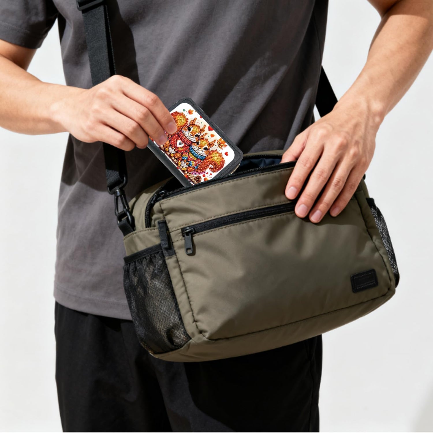 - Diamond Painting Credit Card Wallet—The diamond painting card case has 9 card slots and 2 change slots, providing ample space. Multiple expandable pockets of diamond painting card storage are arranged in an accordion-like format to neatly organize the cards, ensuring they are separated and easily accessible. This diamond painting wallet can hold multiple cards and maintains a slim shape, making it easy to fit into a purse or pocket. The zipper design ensures that the card won't come out