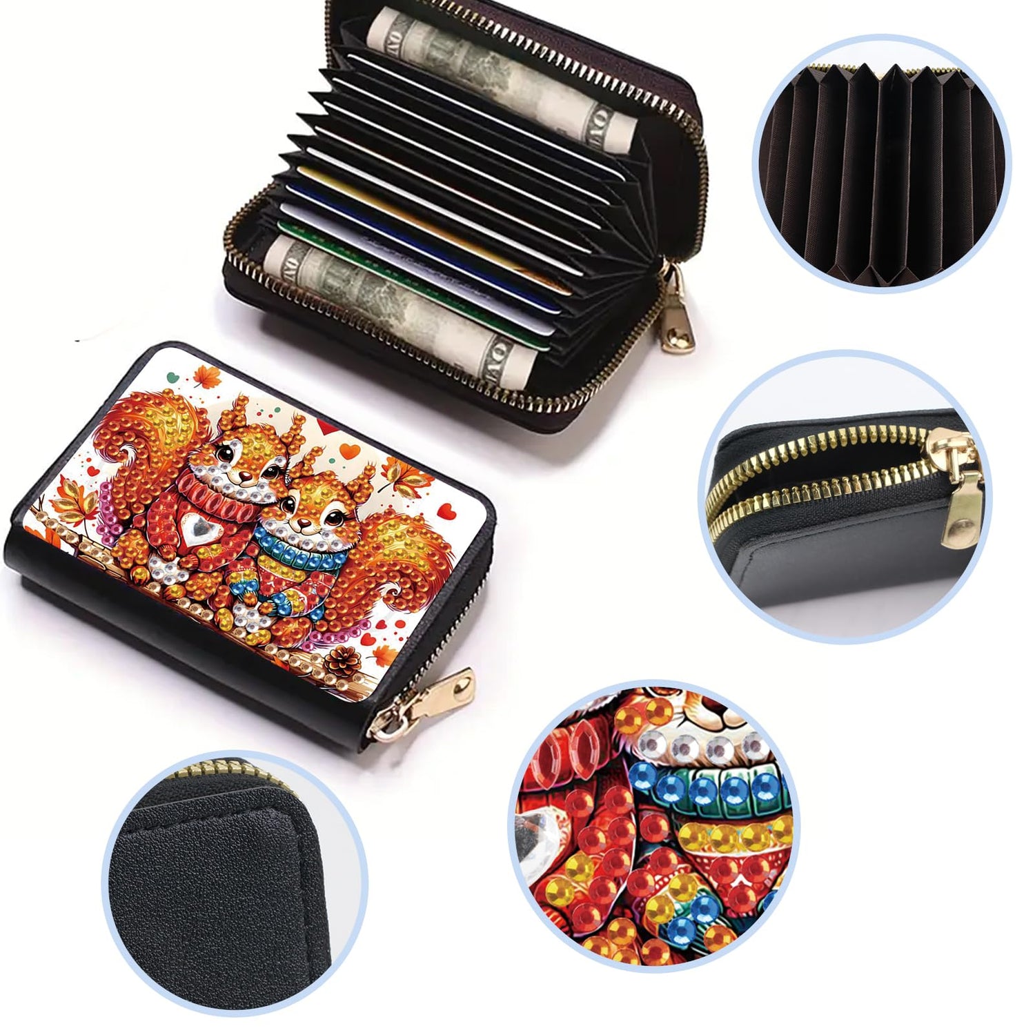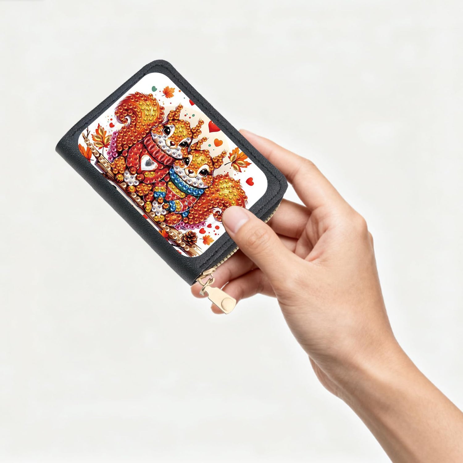 JISHSHAY Diamond Painting Credit Card Holder Squirrel Diamond Art Credit Card Wallet Squirrel Gem Art Wallet Gem Painting Coin Purse Mosaic Kits for Adults Billfold Animal Embroidery Kit Billfold