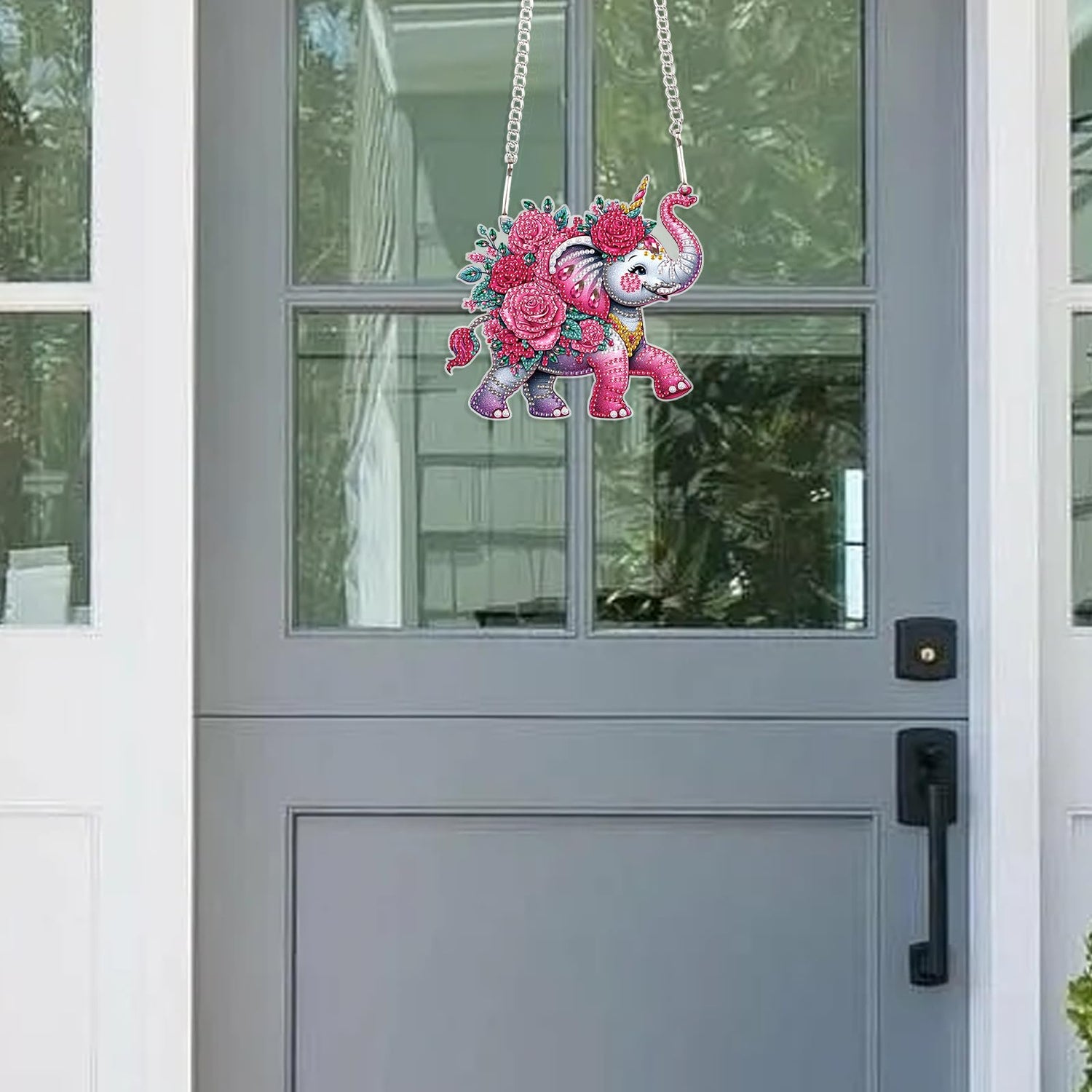 JISHSHAY Diamond Painting Pendant 5D DIY Elephant Flower Art Wind Chime Special Shaped Crystal Suncatcher Garden Outdoor Keyrings Decor