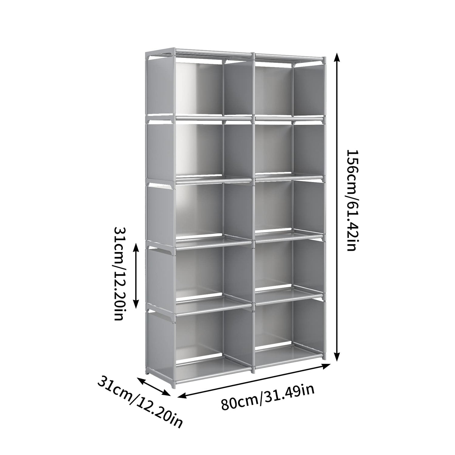 - 【LARGE CAPACITY, STRONG LOAD-BEARING】-- It has 10 grids, the size of each grid is 15.75 x 11.81"/ 40 x 30cm. It has a great storage capacity to store your belongings.The shelf has a strong load-bearing capacity because each layer is supported by four steel pipes.There is an enclosure cloth at the back of the shelf, which can prevent objects from falling from the back, and also can block dust.