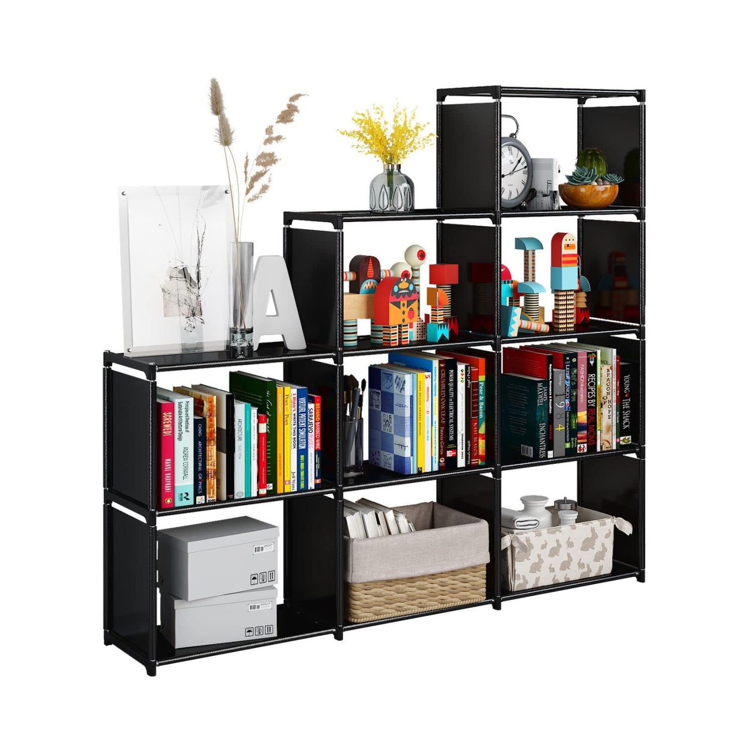 JIUYOTREE Portable Bookcase, 9 Cube Closet Storage Organizer Bookshelf,Clothes Storage for Living Room,Study Room,Bedroom, Black
