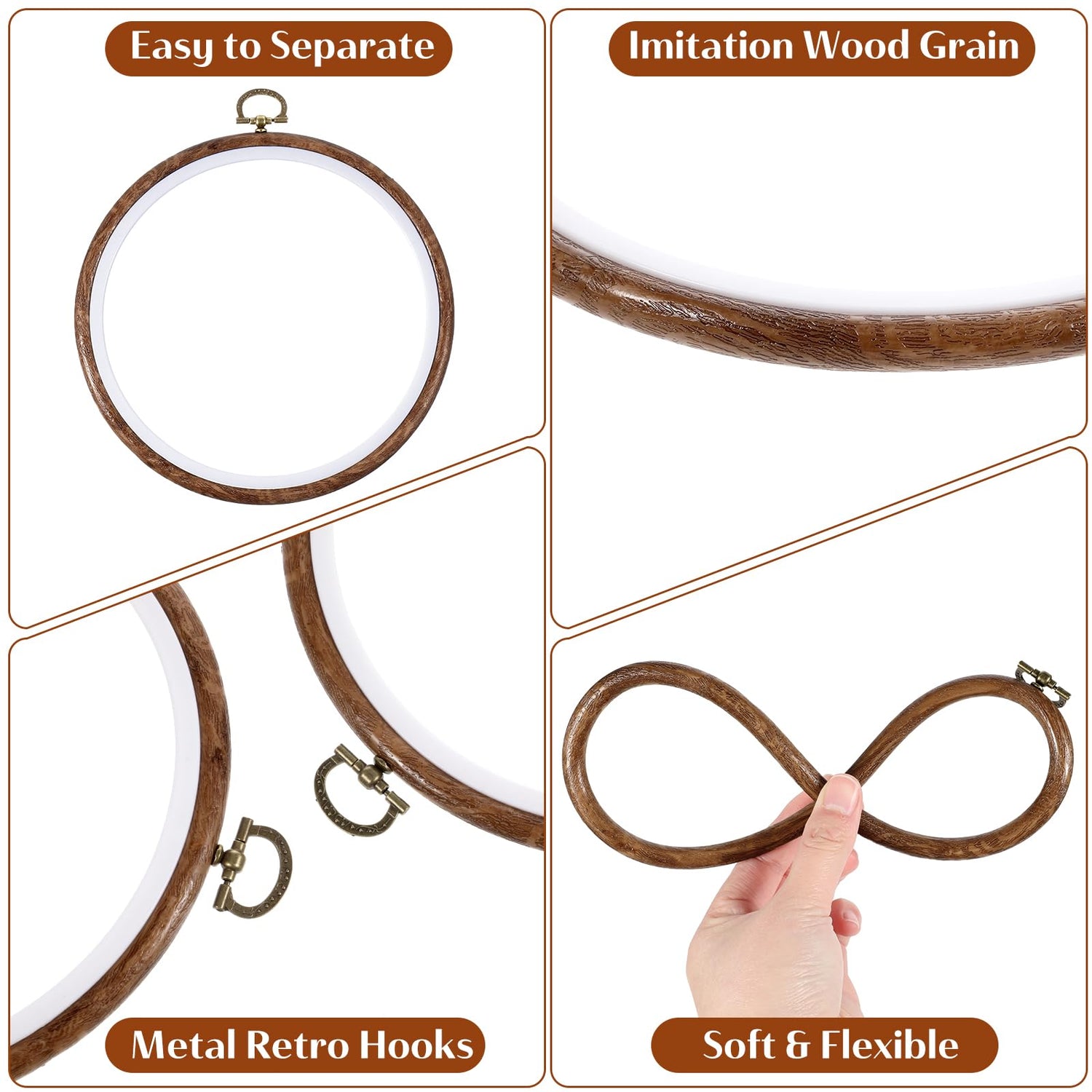 - Vintage Imitation Wood Design: The cross stitch hoops feature a vintage wood grain design, adding an elegant and sophisticated touch to your projects. These wood embroidery hoop wood frames come with a non-adjustable hanging loop, making them ideal for hanging and displaying cross stitch artwork or wall decorations.