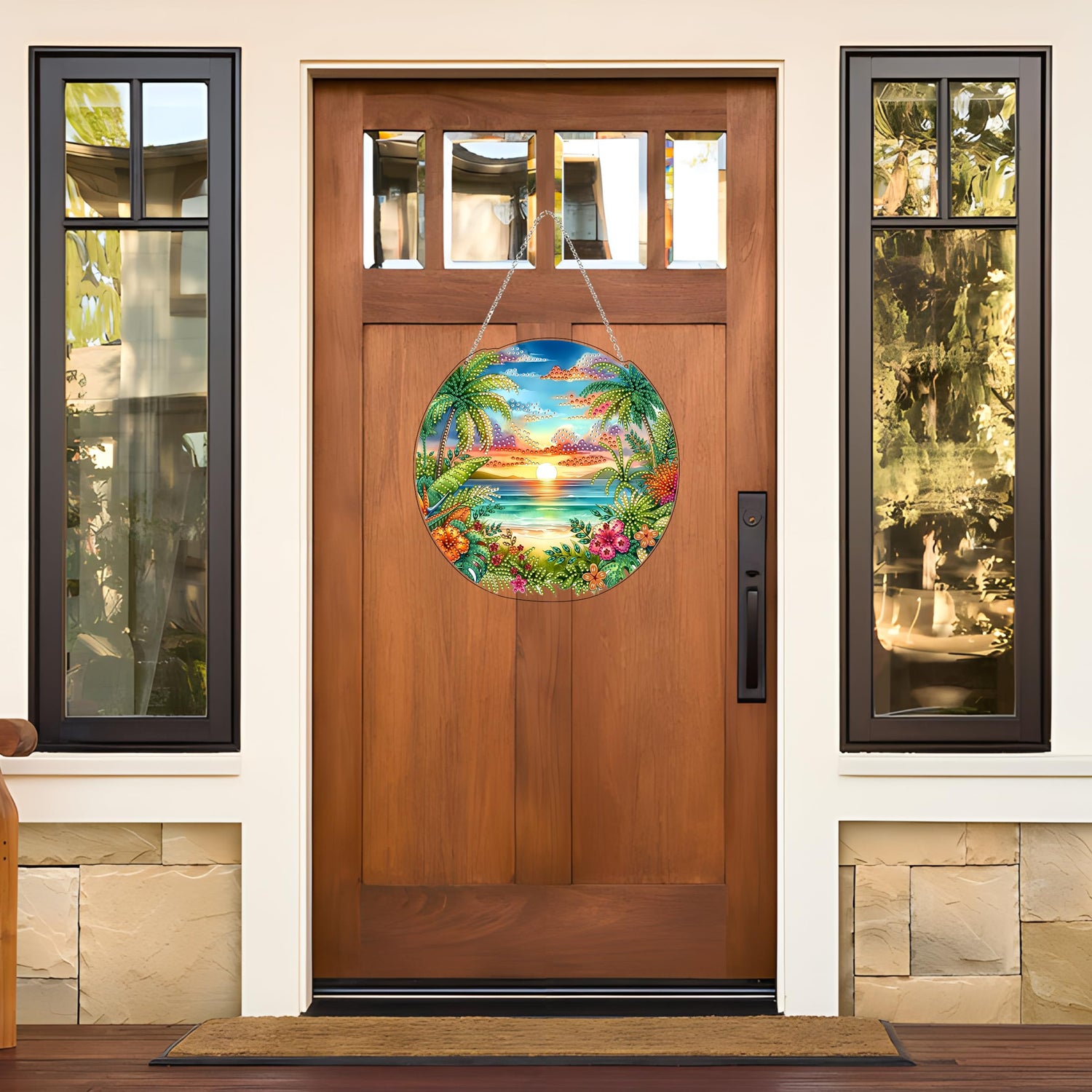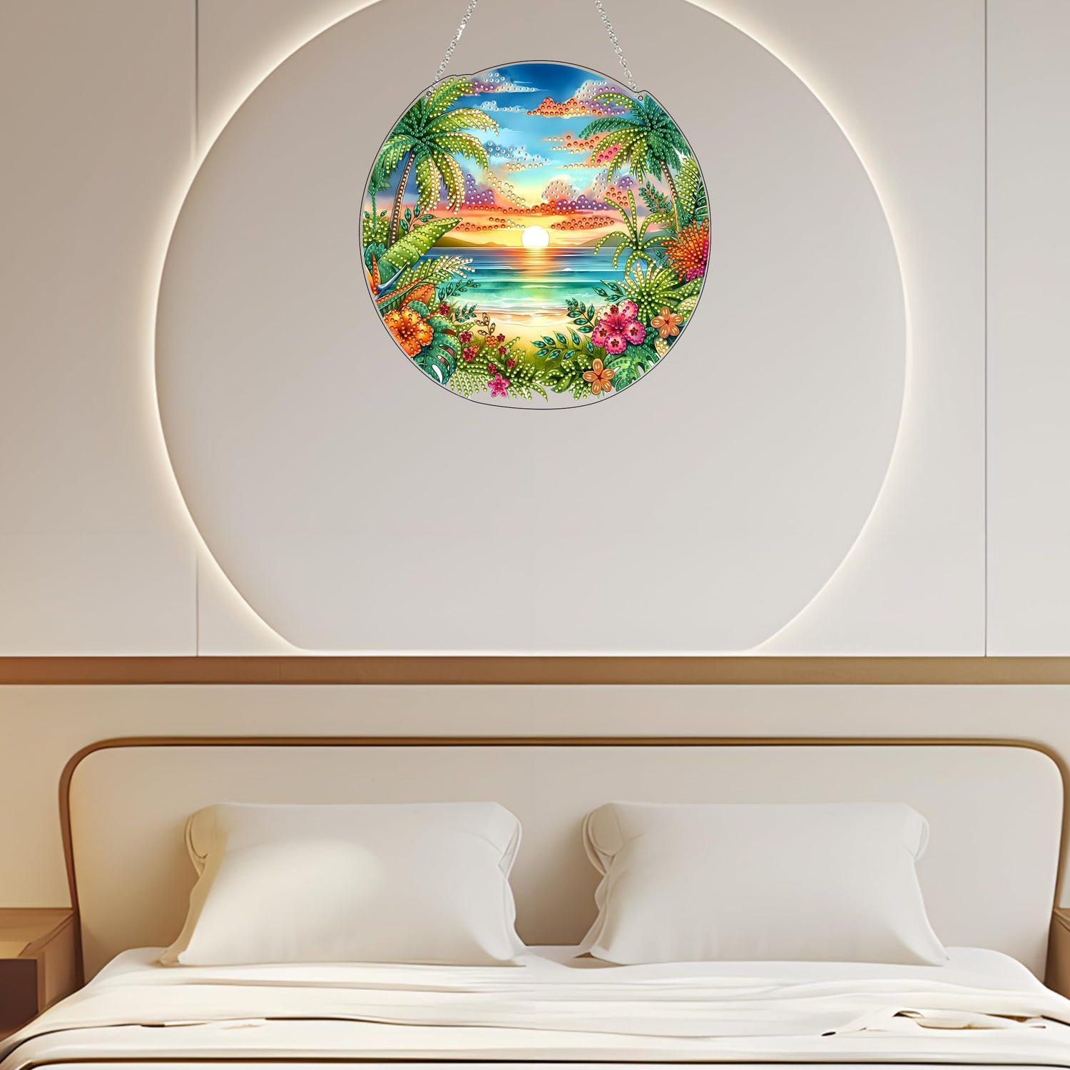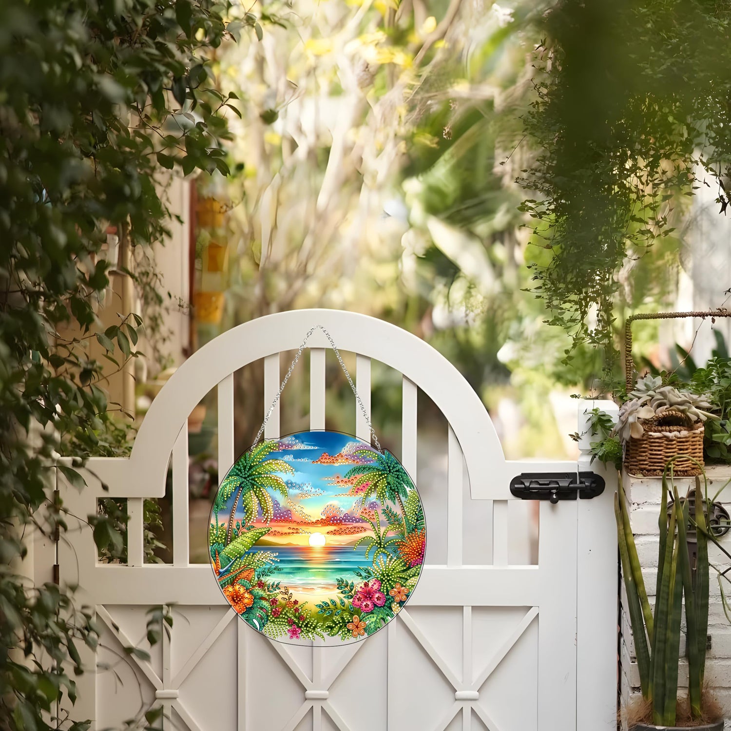 JJFox Diamond Art Hanging Kit for Adult,Special Shaped Rhinestone,Double Sided DIY Acrylic 5D Diamond Art Painting Window Pendants Home Garden Wall Hanging Kits Hanging Ornament (Summer Beach)