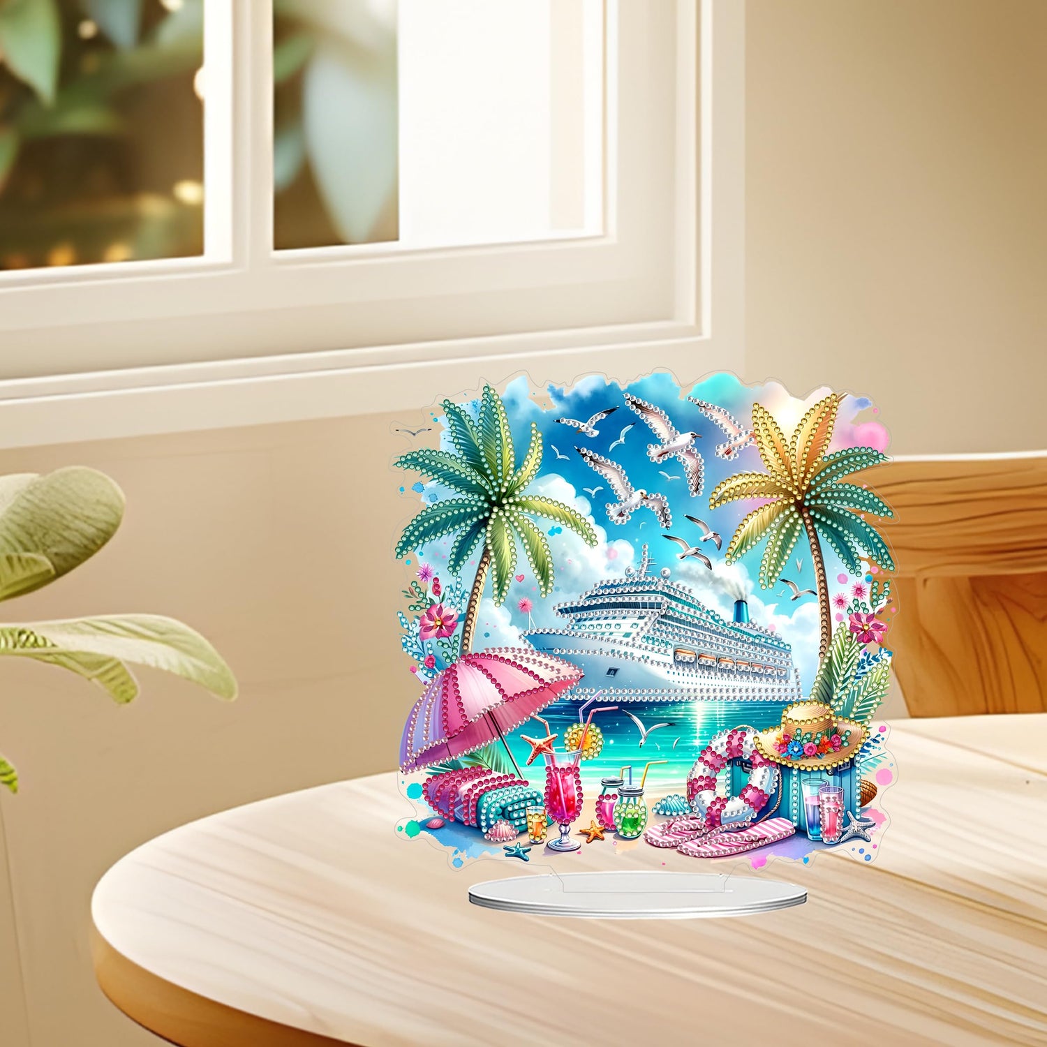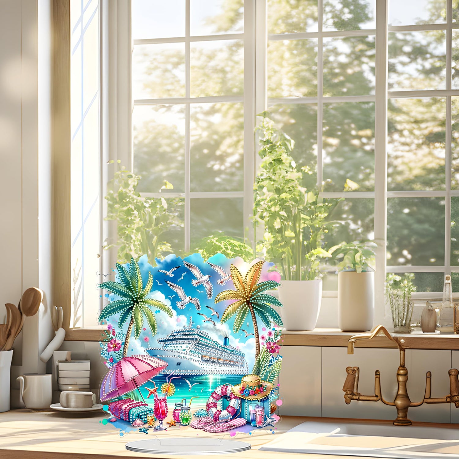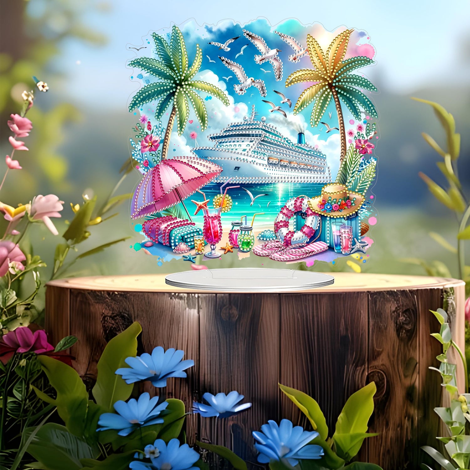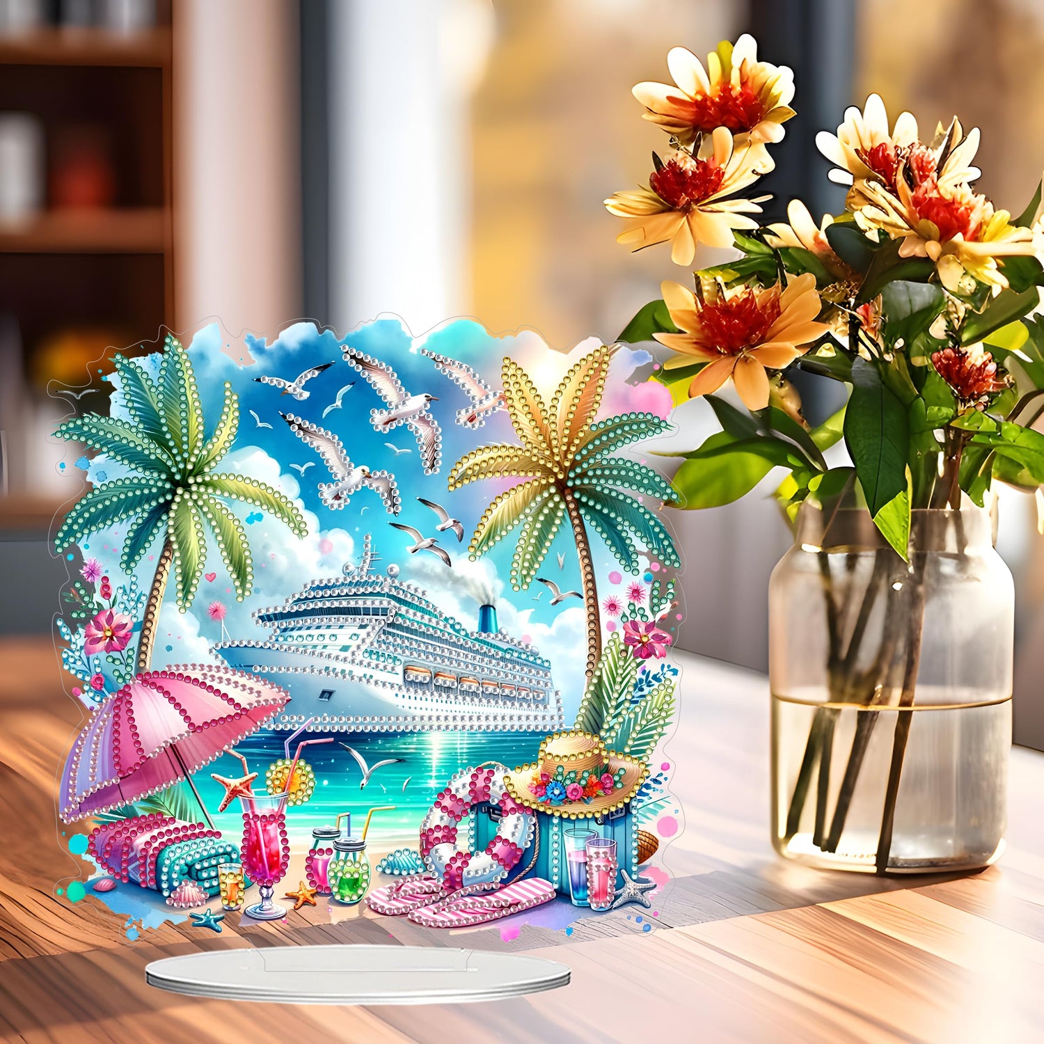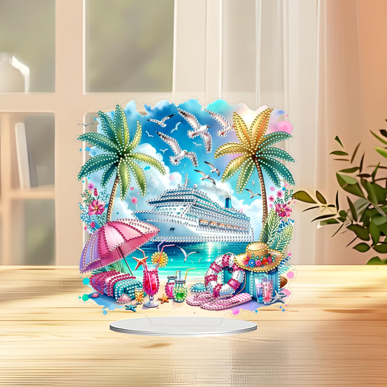 JJFox DIY Tabletop Diamond Art Painting Kit,Double Sided Desktop Ornament Special Shaped Rhinestone Desk Placement Ornament,Home Stand Up 5D Gem Painting Craft Kit,Gift (Summer Beach)