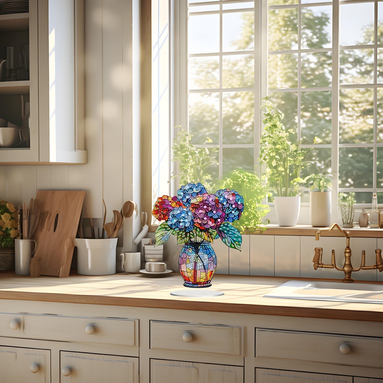 JJFox DIY Vase Tabletop Diamond Art Painting Kit,Special Shaped Rhinestone Desk Placement Ornament,Home Stand Up Gem Painting Craft Kit,Double Sided