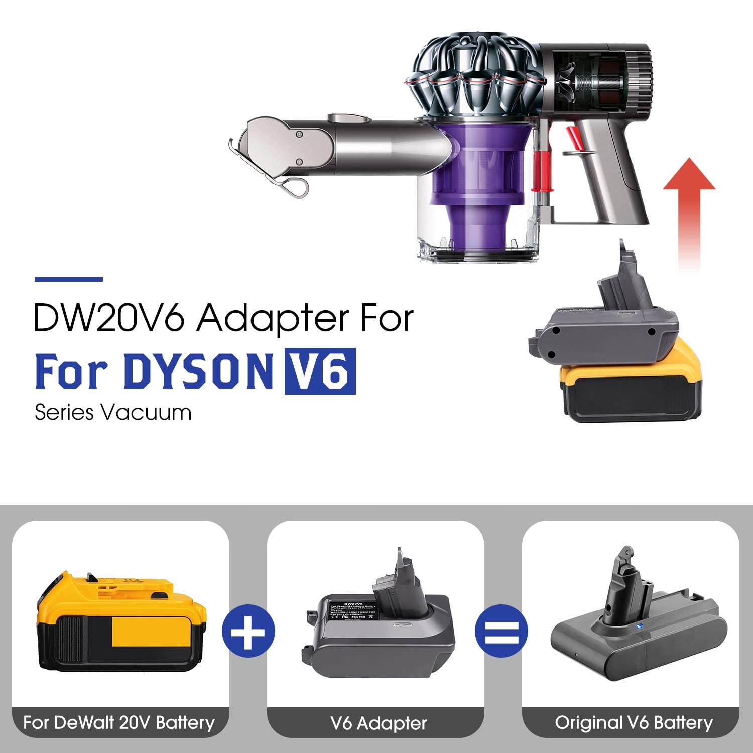- ❷[Compatible with DeWalt 20V Lithium Battery] Convert for DeWalt 20V battery to replace for Dyson V6 battery. If you don't have the V6 battery, but you have the dewa*lt 20v battery. so you just need to get the adapter, then you will can use them and your v6 vacuum cleaners.