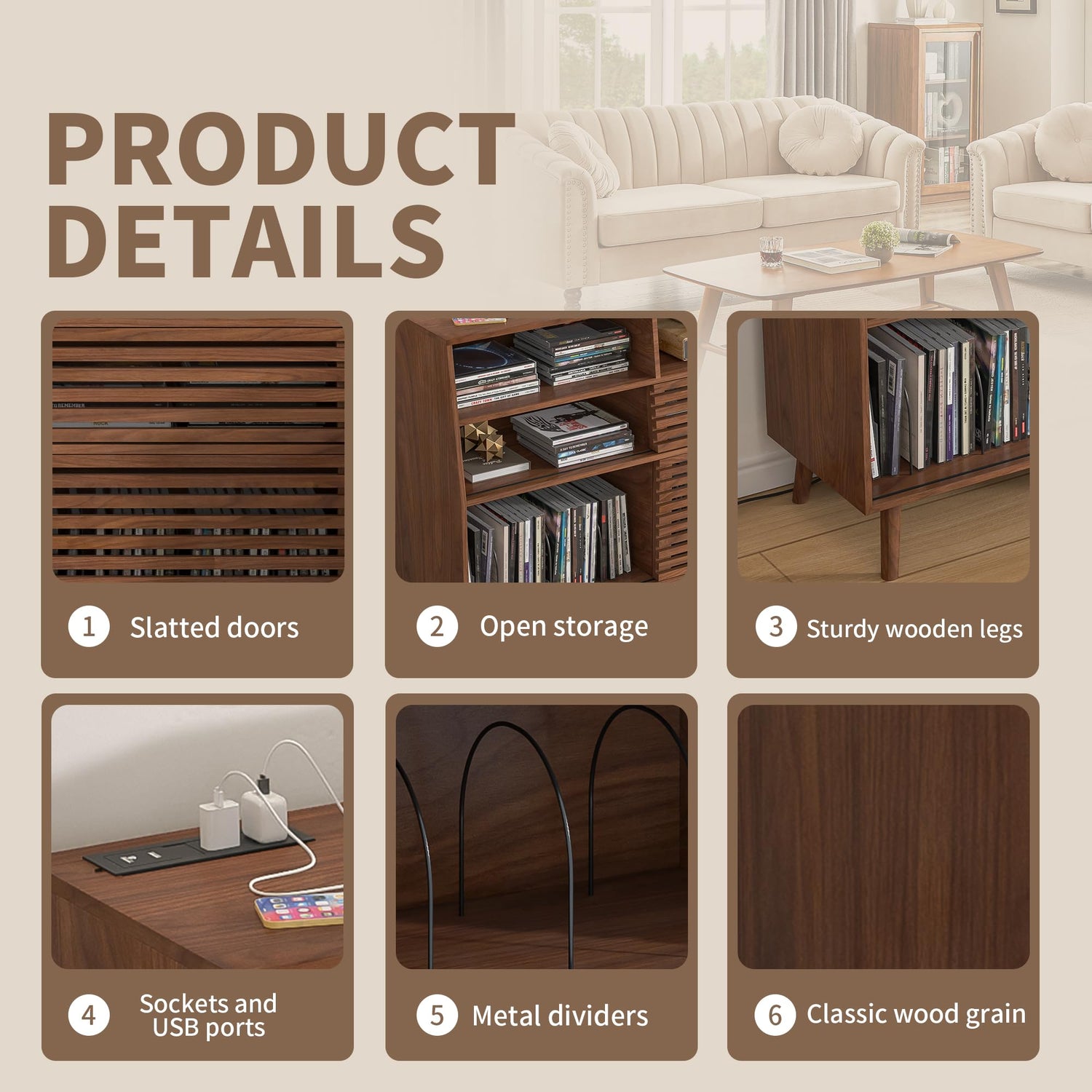 - Sufficient storage space: This Large record storage cabinet is divided into six spaces for storing books, vinyl records, and albums. Compared with ordinary shelves, this record rack has a storage capacity of up to 450 albums. The metal partitions are designed to classify different styles of records, albums, and even magazines