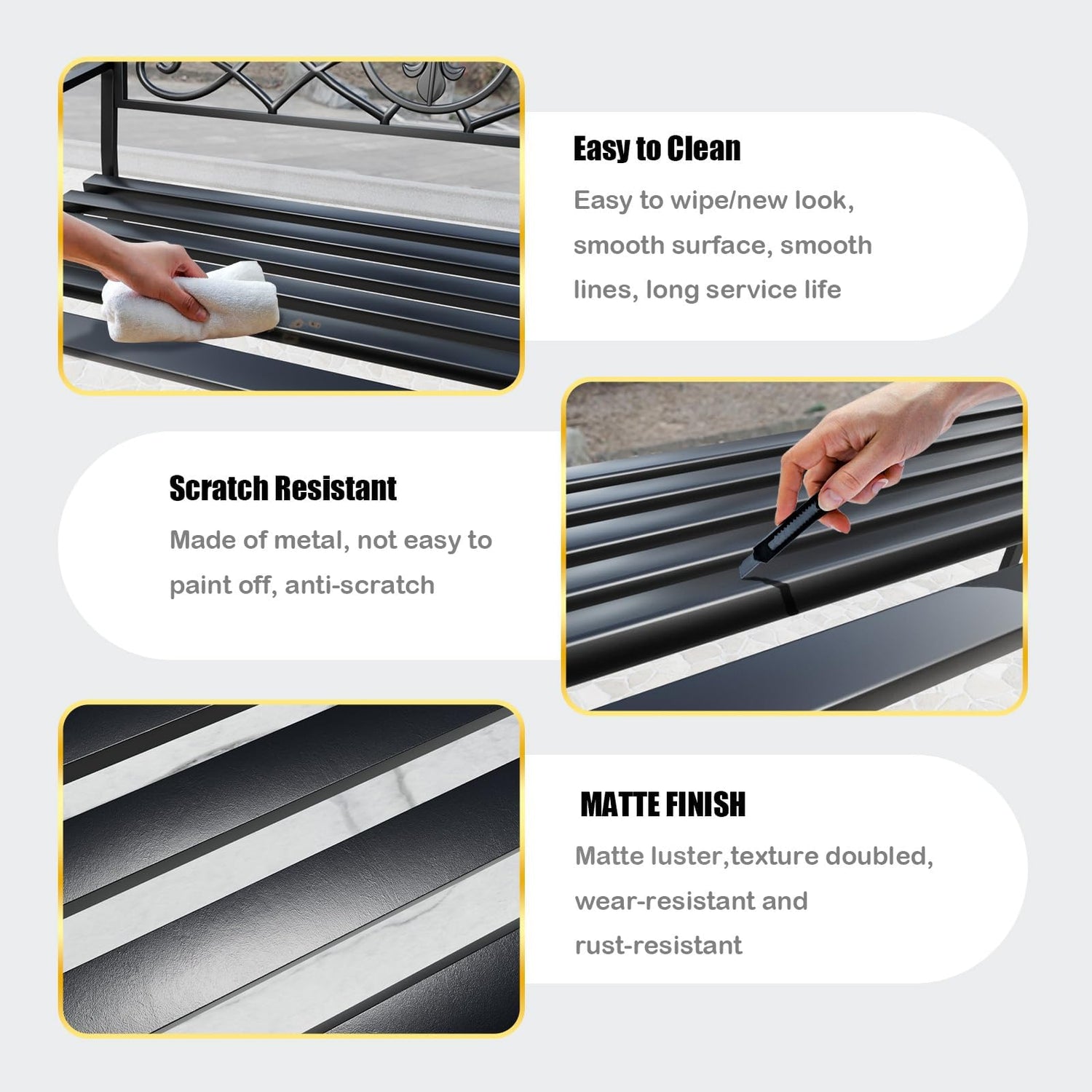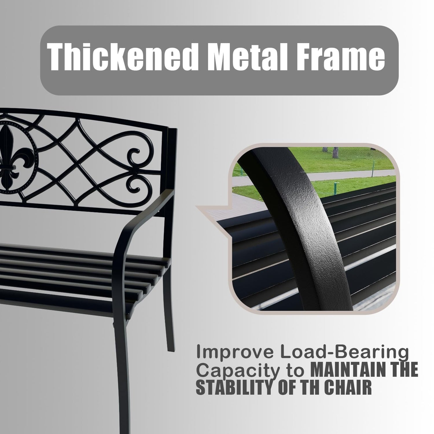 - Durable and Reliable : Elevate your outdoor space with our JMGJOY Garden Bench, crafted from premium wrought iron for long-lasting sturdiness. This Outdoor Bench, designed to comfortably seat up to 3 people with a weight capacity of 550 pounds, is perfect for your patio, porch, or garden