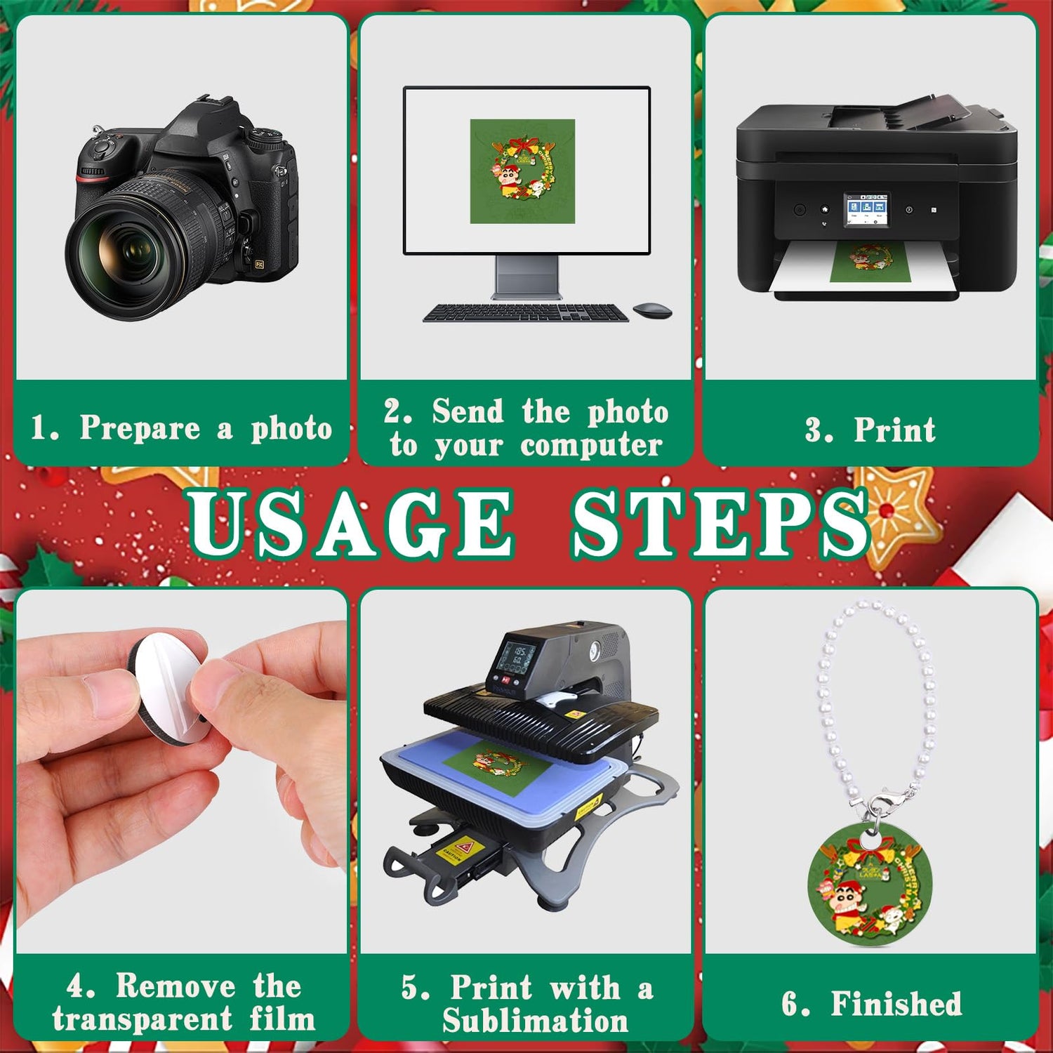 - Sublimation Accessories Size: Round sublimation blank diameter is 1.18 inch/3 cm, thickness is 0.12 inch/0.3 cm. The plastic pearl chains are 4.88 inch/ 12.4 cm. You can make sublimation keychain blanks set as a bag charm, luggage tag, or make a unique handicraft for your friends
