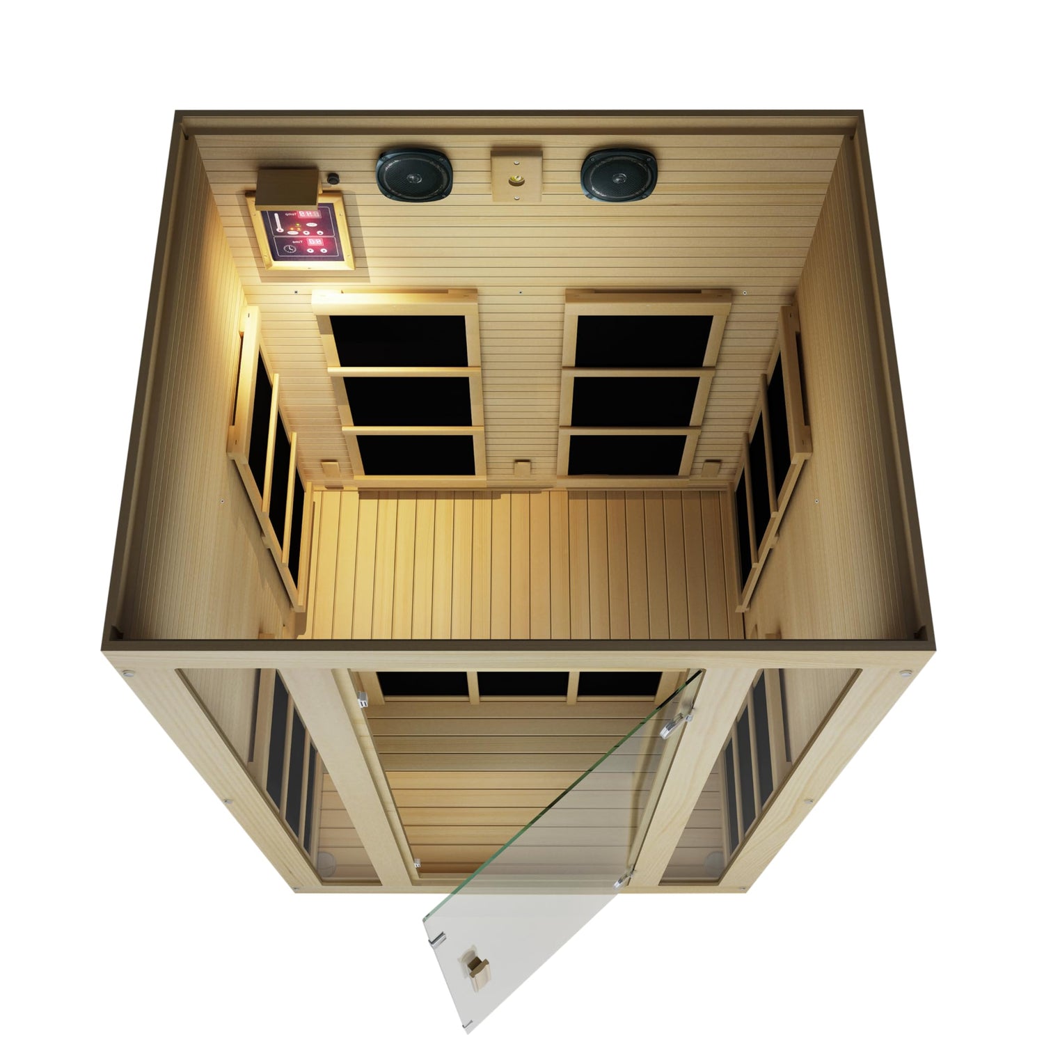 - Simplified digital control panel, no overcomplicated interface; just adjust the temperature, set the duration and enjoy | Outfitted with seven (7) carbon fiber far Infrared heaters, strategically placed to provide full coverage
