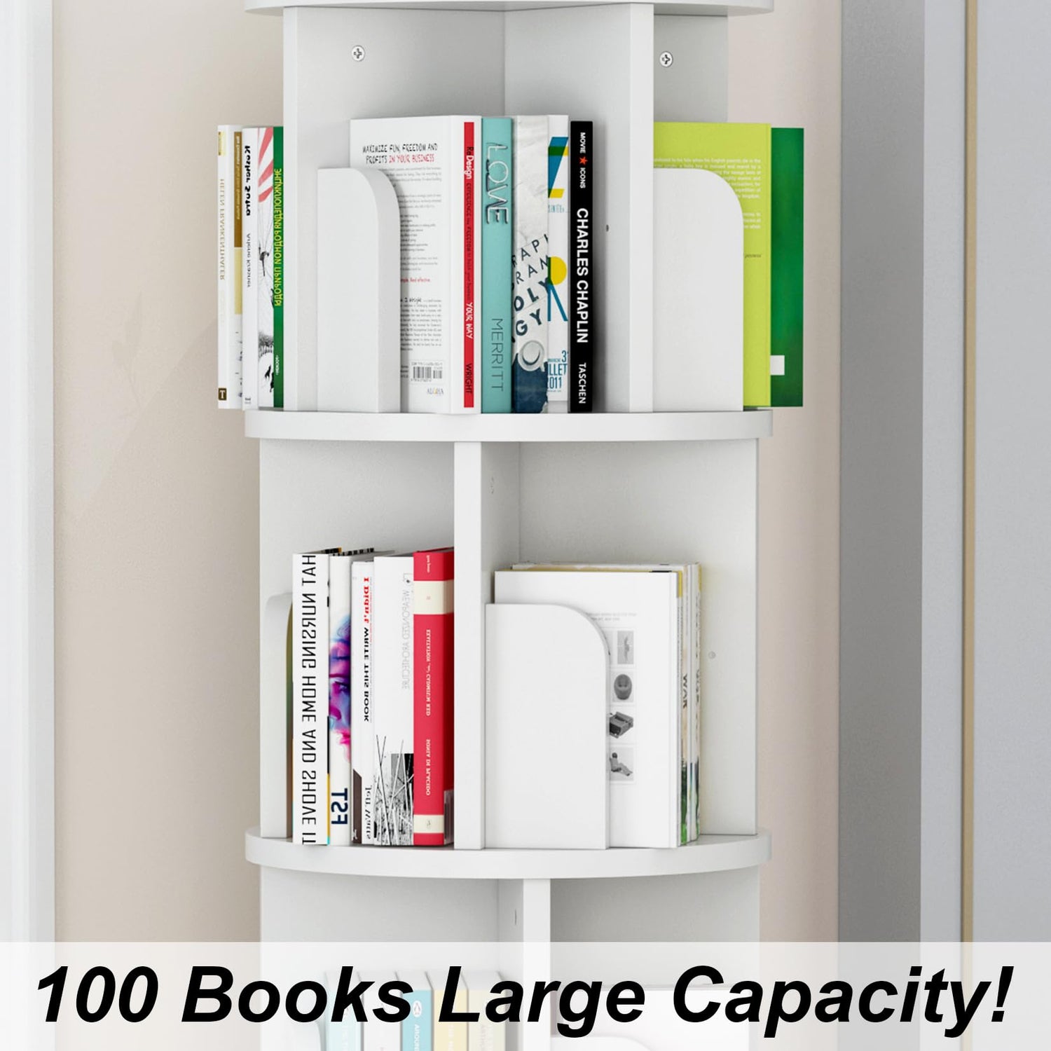 JoanKaren 51.2" Rotating White Wood Bookshelf - 4 Tier Corner Organizer for Kids and Adults