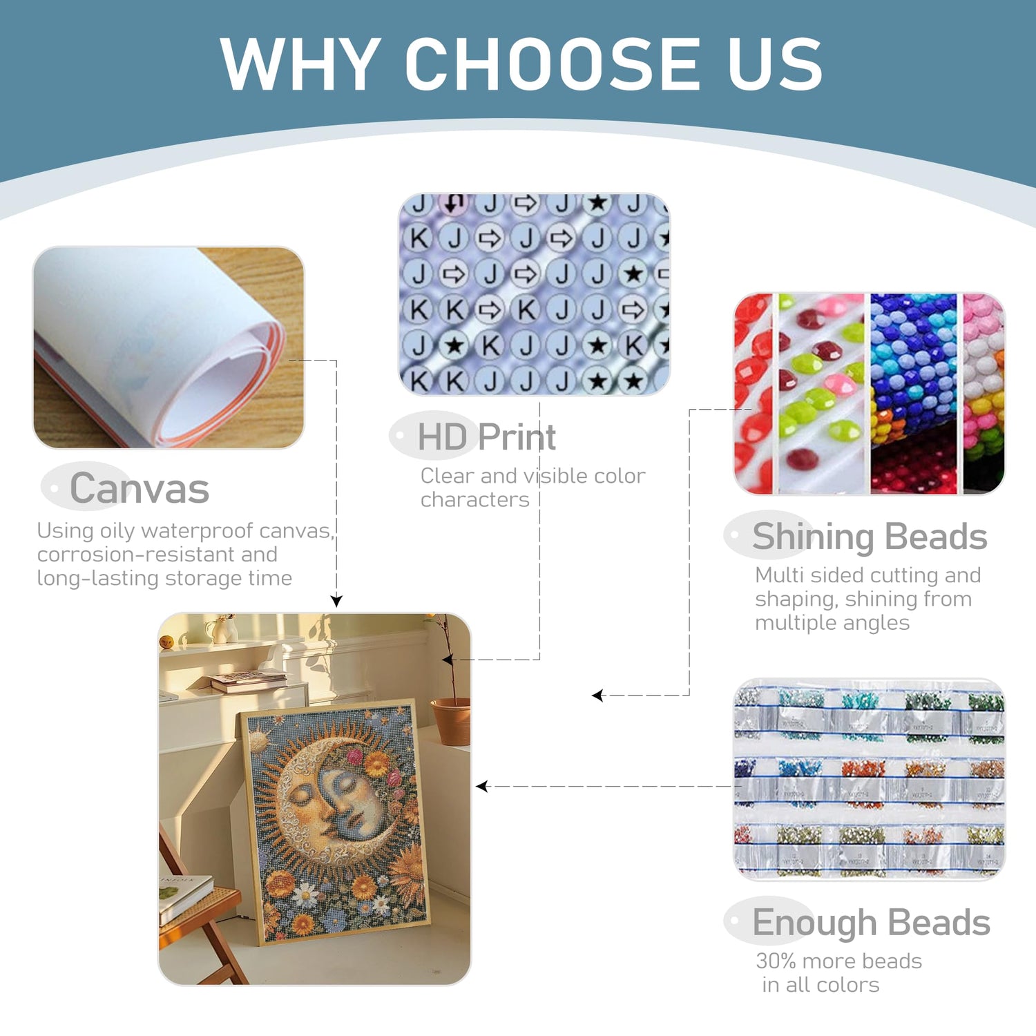 - Moon&Sun Diamond Painting Kits: Our 5d diamond art kits for adults can be easily completed by beginners, with love as the theme, bringing you a calm and pleasant experience;diamond painting kit includes the canvas, beads,tools needed for handmade crafting
