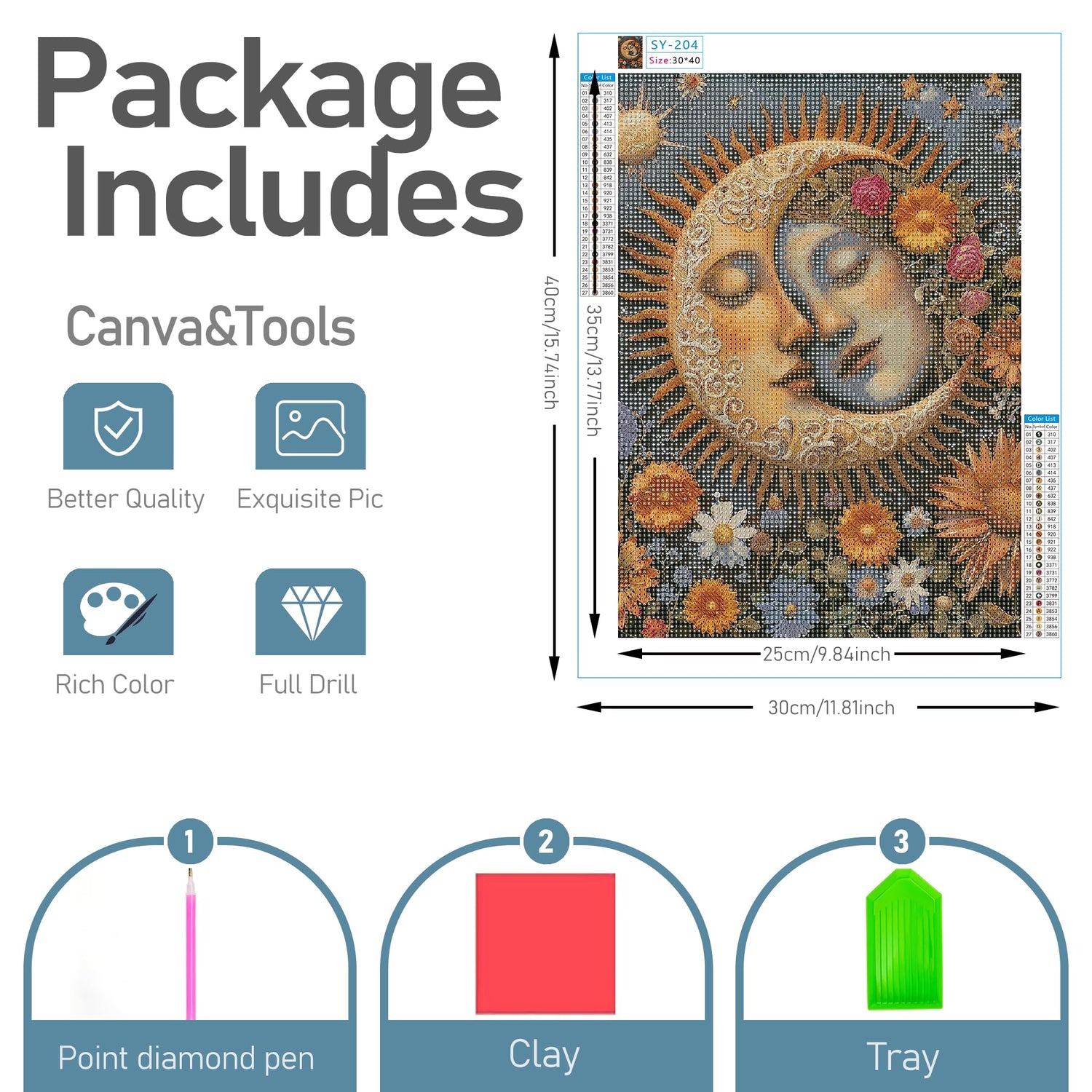 - Diamond Art Kits Includes: Canvas*1,tool kits*1,130% of beads per color, full diamonds in the painting area,everything you need for your production;if you have any questions, please let us know