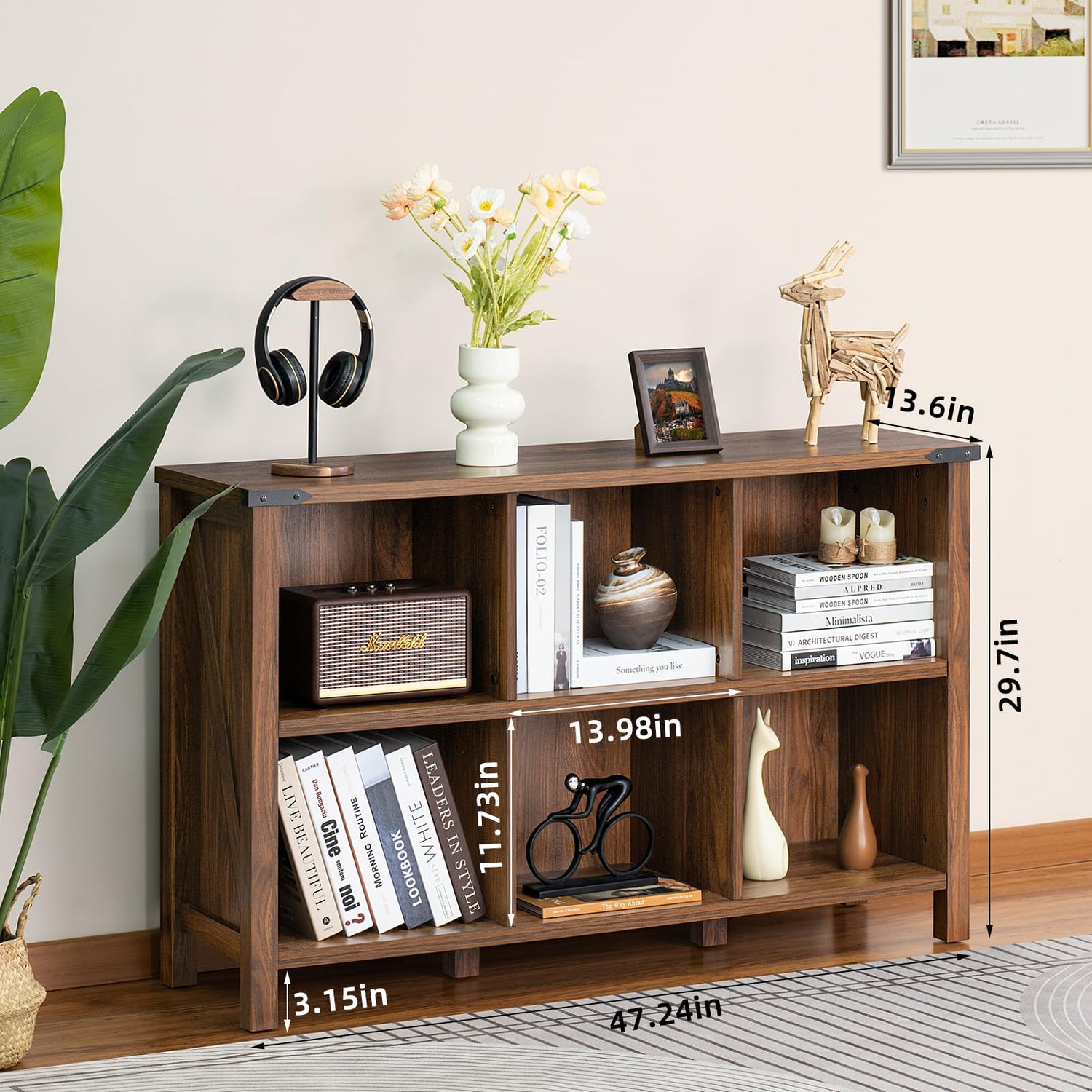 Discover the perfect blend of functionality and rustic charm with the Joaxswe Rustic 6 Cube Wood Bookshelf. This exquisite 3-tier storage organizer in a rich Brown Walnut finish is designed to elevate your space while providing generous storage options.